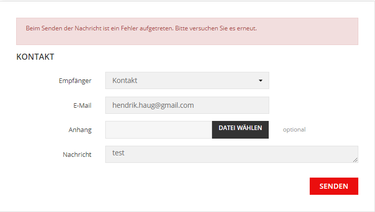 Jeditter67 Posted May 13, 2021 Author Share Posted May 13, 2021 (edited) Hi vielen Dank für die Rückmeldung. Also wenn ich aus dem Kontaktformular eine Nachricht schicke (ohne Captcha, was ich aber später noch einbaue), wird auf der Webseite mit rotem Hintergrund "Beim Senden der Nachricht ist ein Fehler aufgetreten. Bitte versuchen Sie es erneut" ausgegeben. Ich habe mich schon durch das Forum durchgeackert und alles versucht, aber kann das Problem nicht beheben. PHP Version: 7.4 (auf one.com) MySQL Komischerweise funktioniert das Kundenservice Modul reibungslos, auch eine Testmail schicken geht (im Backend). Hab beides versucht, PHP Mailer() und SMTP. Prestashop Version 1.7.5.1 und Theme Bentriz. Liegt es an einer tpl oder an einer php Datei? Danke für die Hilfe Edited May 13, 2021 by Jeditter67 (see edit history) Link to comment Share on other sites More sharing options...