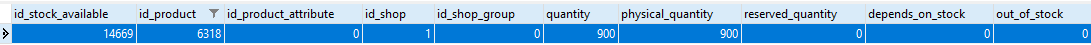 De esta forma en la tabla product_attribute no se queda ningún registro con la id_product 6318 y en la tabla stock_available se queda un registro con id_product 6318, id_product_attribute 0, quantity 900 y physical_quantity 900 (adjunto captura de la tabla stock_available)