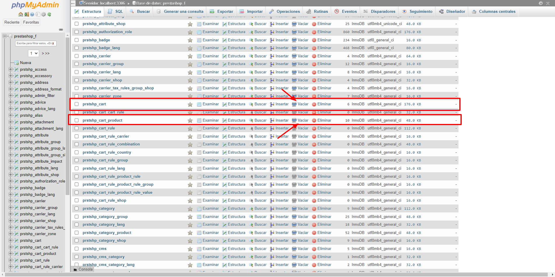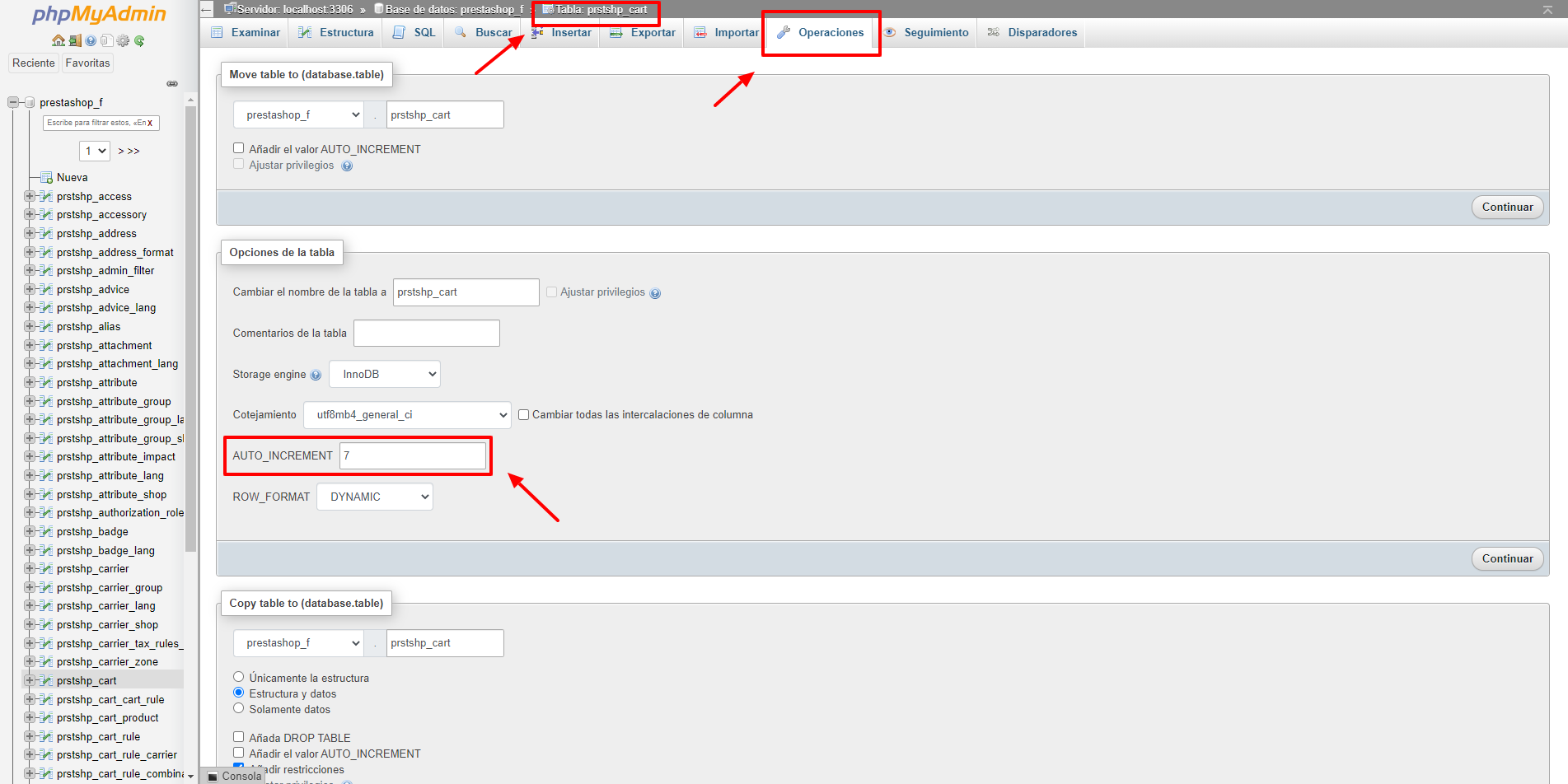 Loadinges Posted September 7, 2021 Share Posted September 7, 2021 (edited) Buenas, Esto puede ocurrir porque se ha reseteado el "AUTO_INCREMENT" de la tabla "xx_cart", y está mezclando antiguos carritos de compra de otros clientes o usuarios. Tienes varias opciones: - aumentar el "AUTO_INCREMENT" de la tabla "**_cart" a un valor muy elevado (100000 por ejemplo), para que no coincida con otros carritos anteriores. - vaciar las tablas "xx_cart" y "xx_cart_product" Adjunto capturas de pantalla, con los pasos a seguir desde phpmyadmin en ambos casos. Edited September 7, 2021 by Loadinges (see edit history) Link to comment Share on other sites More sharing options...
