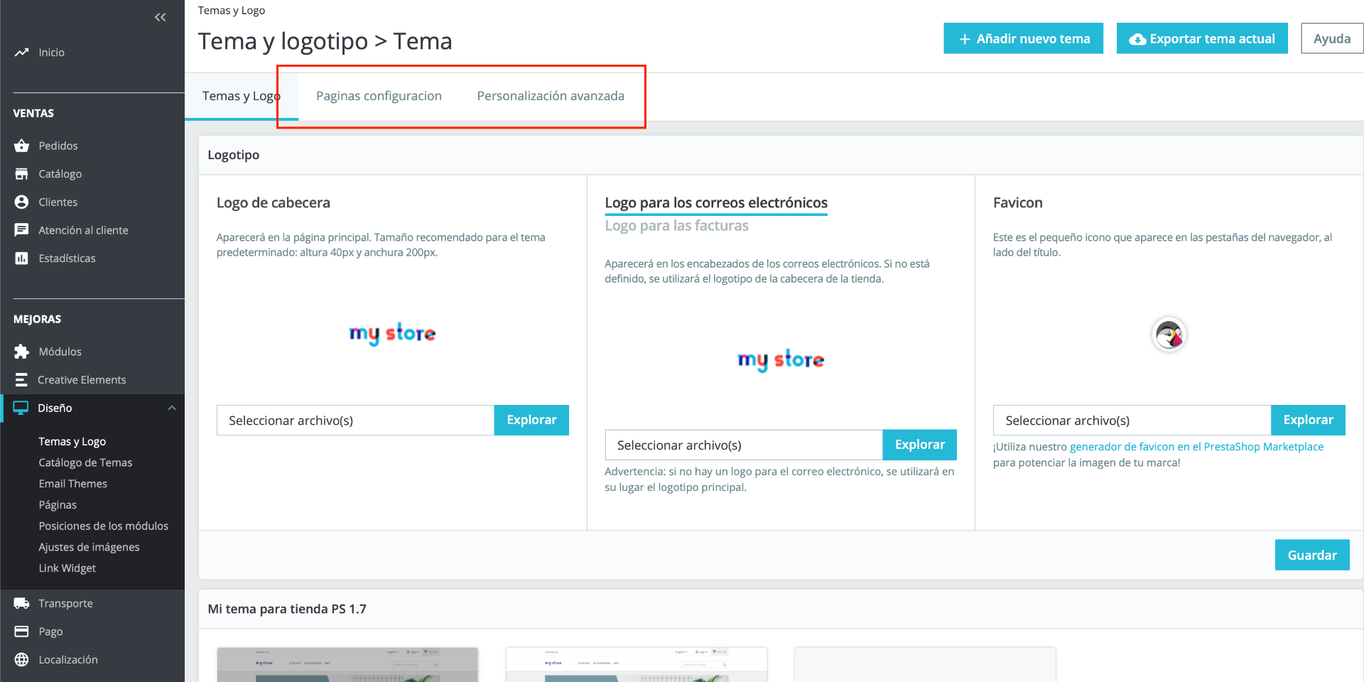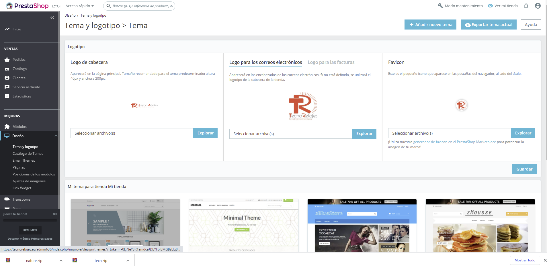 Tecnorelojes Posted May 20, 2021 Share Posted May 20, 2021 Hola,buenas tardes. Os pido ayuda para ver si alguien me puede ayudar. He instalado la plantilla Classic que viene con Prestashop, y no soy capaz de que me aparezcan más menus para poder configurar mi página ,con los banner y demás. Unicamente me aparece esta pantalla y veo por gente que ha hecho videos en You tube, que junto a Tema y Logotipo, aparecen 2 pestañas mas , para configurar más opciones, pero a mi no me salen ....🤔 Si alguien pudiera echarme un mano, le estaria muy agradecido. adjunto captura Link to comment Share on other sites More sharing options...