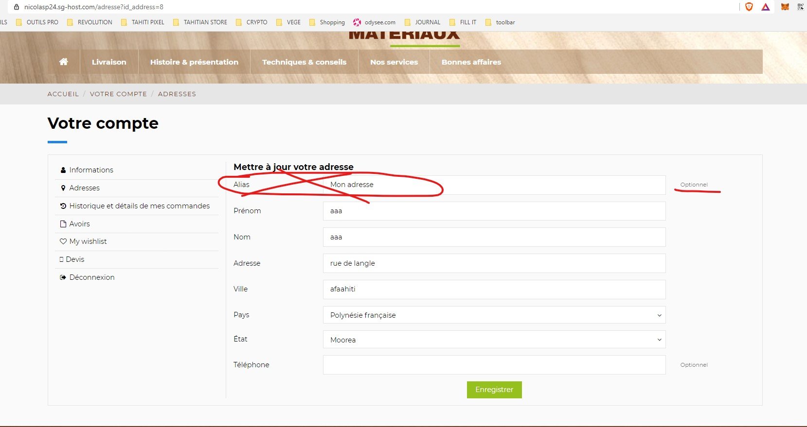toimata Posted May 21, 2021 Share Posted May 21, 2021 Hello, How can i remove "alias" field (wich is optional) on the front customer address form ? i can't find it on the location / country pay in backoffice page Thanks cheers, Link to comment Share on other sites More sharing options...