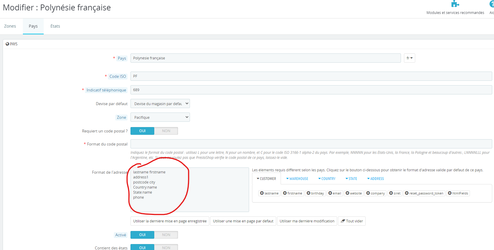 toimata Posted May 27, 2021 Author Share Posted May 27, 2021 Hi, Thanks a lot for your answer. Isn't there a simple way to do it from backoffice ? Why this field is not visible in the country settings with other fields ? Link to comment Share on other sites More sharing options...