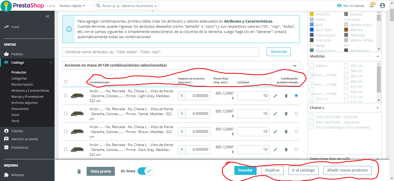 estenolotienenadie Posted May 24, 2021 Author Share Posted May 24, 2021 Efectivamente, era eso, le di a (-) y apareció nuevamente. Sabe usted cuantas son las cantidades de combinaciones posibles que se pueden hacer en prestashop? Lo pregunto porque yo hago muchas y la pagina se relentia bastante, Muchas gracias y un saludo. Link to comment Share on other sites More sharing options...