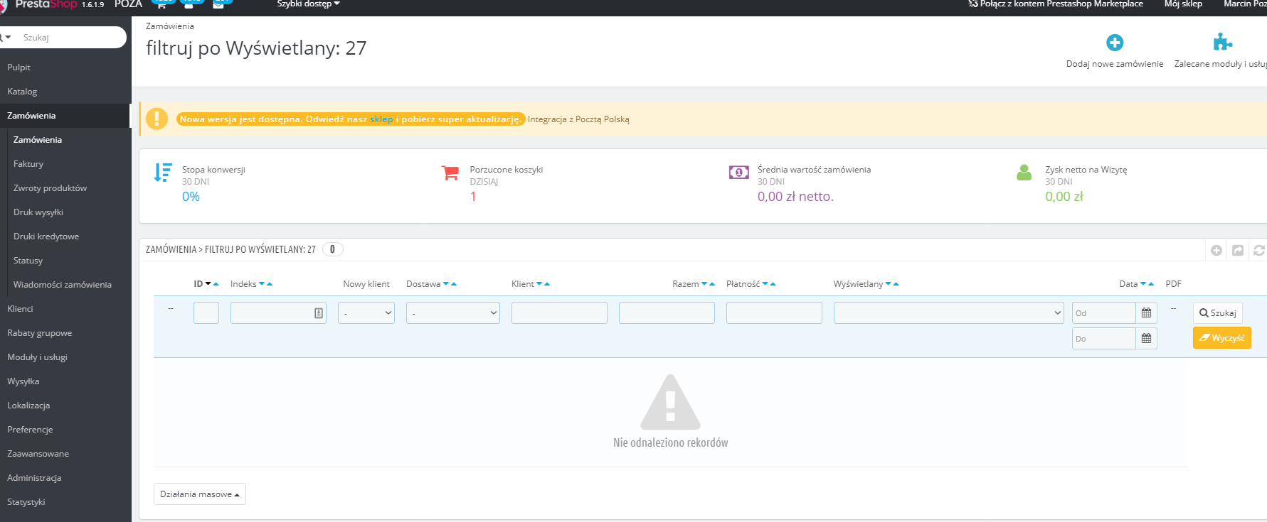 0 Dyzio45 Posted June 10, 2021 Author Share Posted June 10, 2021 14 minutes ago, endriu107 said: Jak klikniesz na ten pomarańczowy przycisk Wyczyść i spróbujesz ponownie masz ten sam efekt? niestety własnie tak w nieskończoność i na wszystkich komputerach ale jest pewna zasada : wpiszę ID , jest komunikat : filtruj po ID: 222, Wyświetlany: 28 - brak wyników oczywiście szukam "wyswietlany" np. anulowano - są wyniki i to tylko w tej rubryce szukam po płatności jesy : filtruj po Płatność: payu, Wyświetlany: 28 szukam po kwocie jest :filtruj po Razem: 469, Wyświetlany: 25 po nazwisku : filtruj po nowak, Wyświetlany: 25 po kraju : filtruj po Dostawa: 125, Wyświetlany: 25 po kliencie itd. klikam stronę nr 2 : filtruj po Wyświetlany: 28 Link to comment Share on other sites More sharing options...