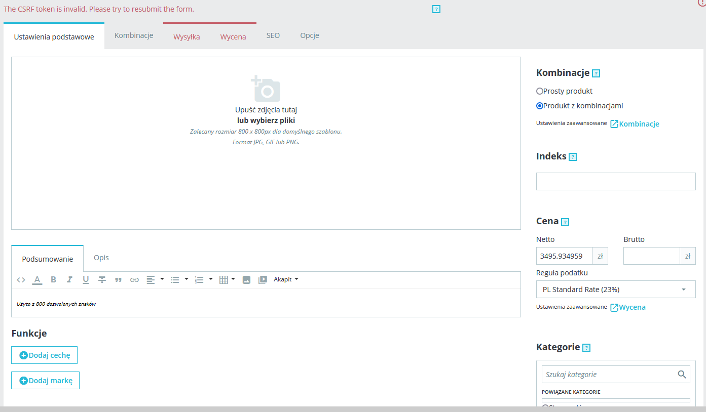 mikolop1 Posted June 10, 2021 Share Posted June 10, 2021 Hi i have a problem with saving changes in products, the page is kinda wanky and jacked, it happend after a month of not touching anything. You cn se the error "The CSRF token is invalid. please try to resubmit the form". I tried upgrading prestashop to a new version but another error prevents me from that. [Ajax / Server Error for action unzip] textStatus: "error " errorThrown:" " jqXHR: " " I am not good at coding so please propose solutions if you have any, like you would to a child. Thanks :) Link to comment Share on other sites More sharing options...