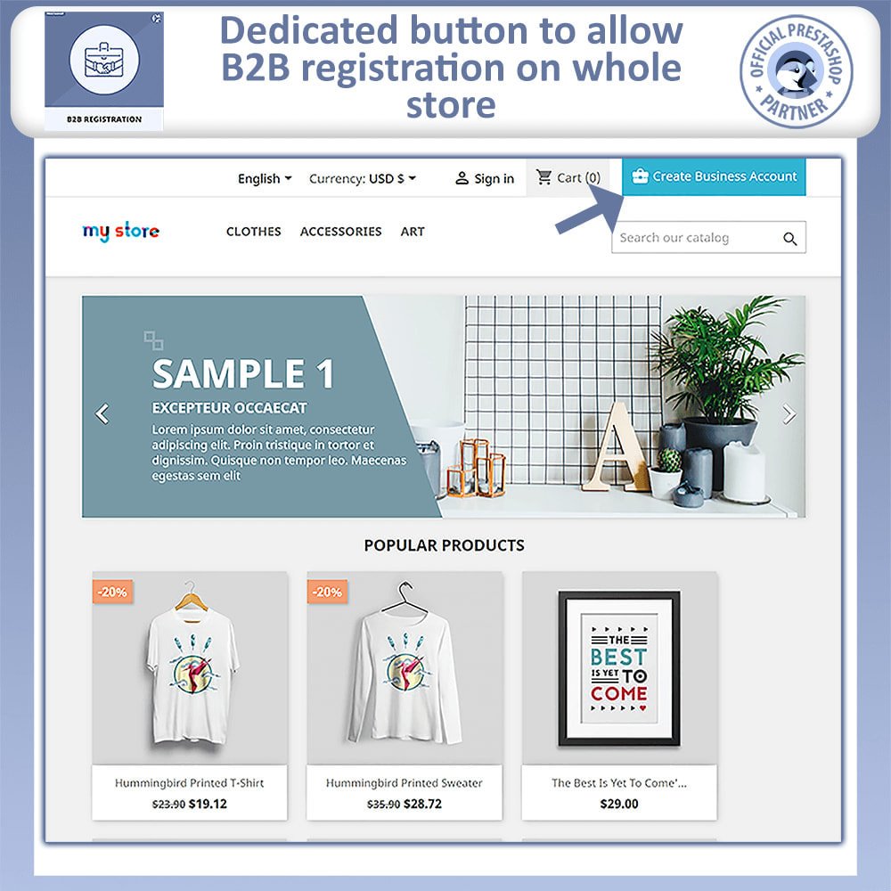 You can see both registration forms at the top if that serves as any indication. On the left is the standard button, on the right is the button created by the B2B Registration module. Both work.