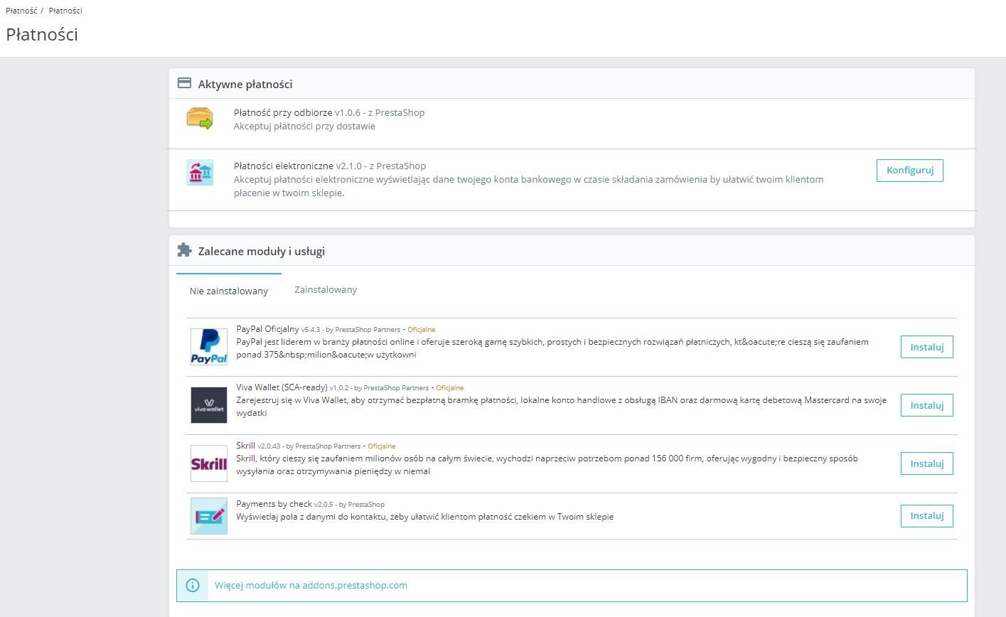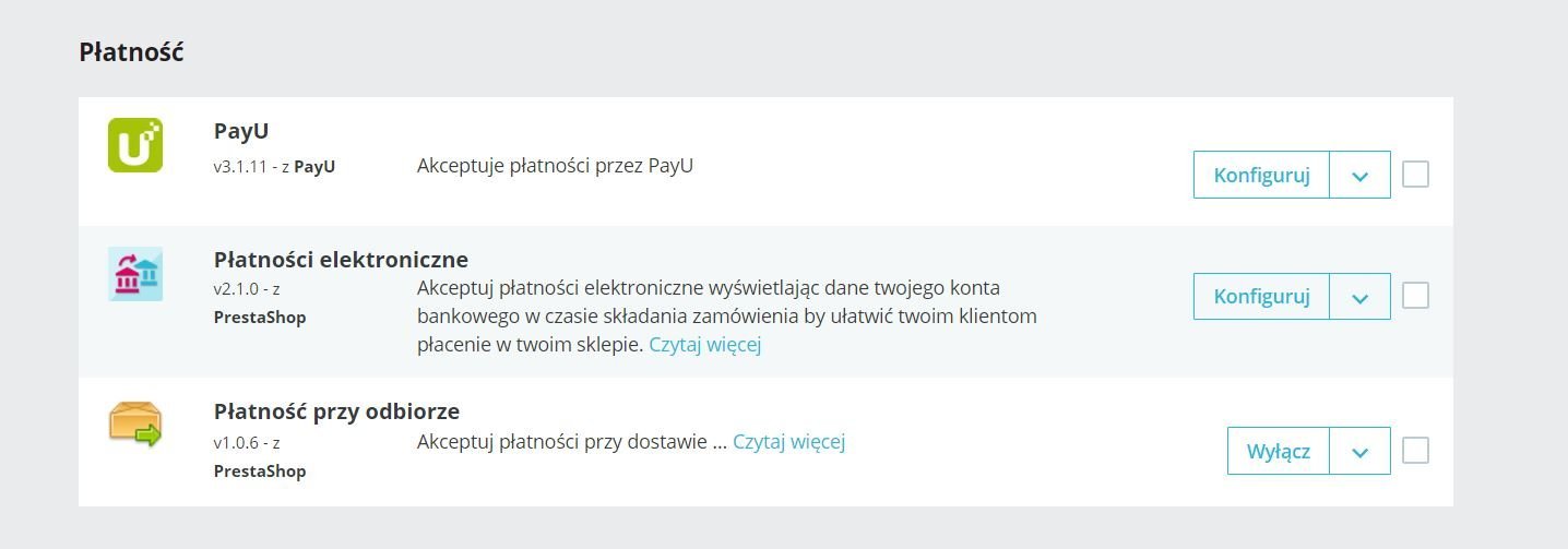 Na liście modułów płatności (moduły/płatności) PayU jest.