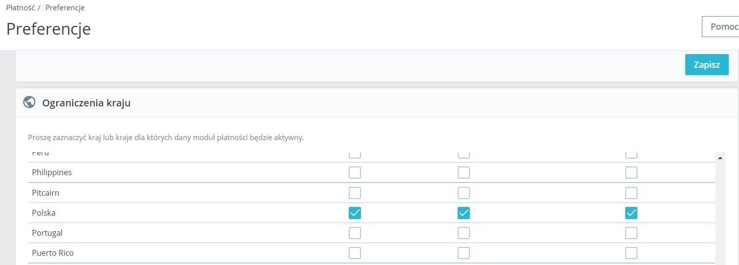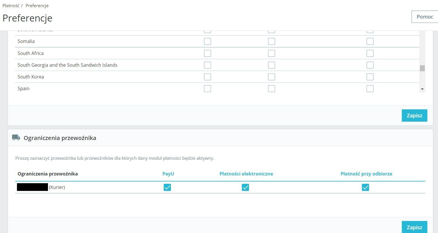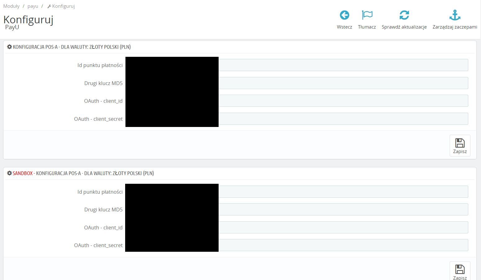 W panelu administracyjnym mojego sklepu (w Płatność/Preferencje) PayU zostało skonfigurowane tak: