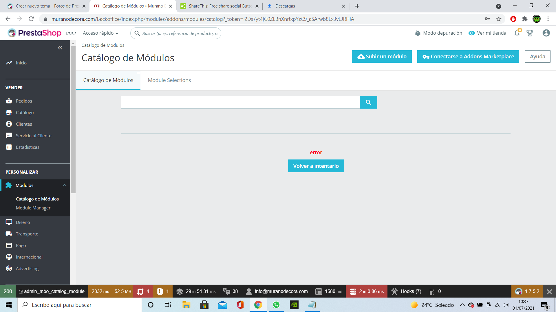 Héctor jc Posted July 1, 2021 Share Posted July 1, 2021 Tras intentar la instalación del modulo "sharethis-share-buttons.1.5.1.zip¨" la pagina me dio error de instalación tras lo cual no me cargan los módulos instalados anteriormente y saliéndome una pantalla de error en la que aparece el titulo: "Se intentó llamar a la función "trailingslashit" desde el espacio de nombres "ShareThisShareButtons"." al querer acceder al gestor de módulos. Mis conocimientos en este ámbito son muy limitados si alguien me pudiera guiar o decirme donde encontrar la solución se lo agradecería. un saludo. Link to comment Share on other sites More sharing options...