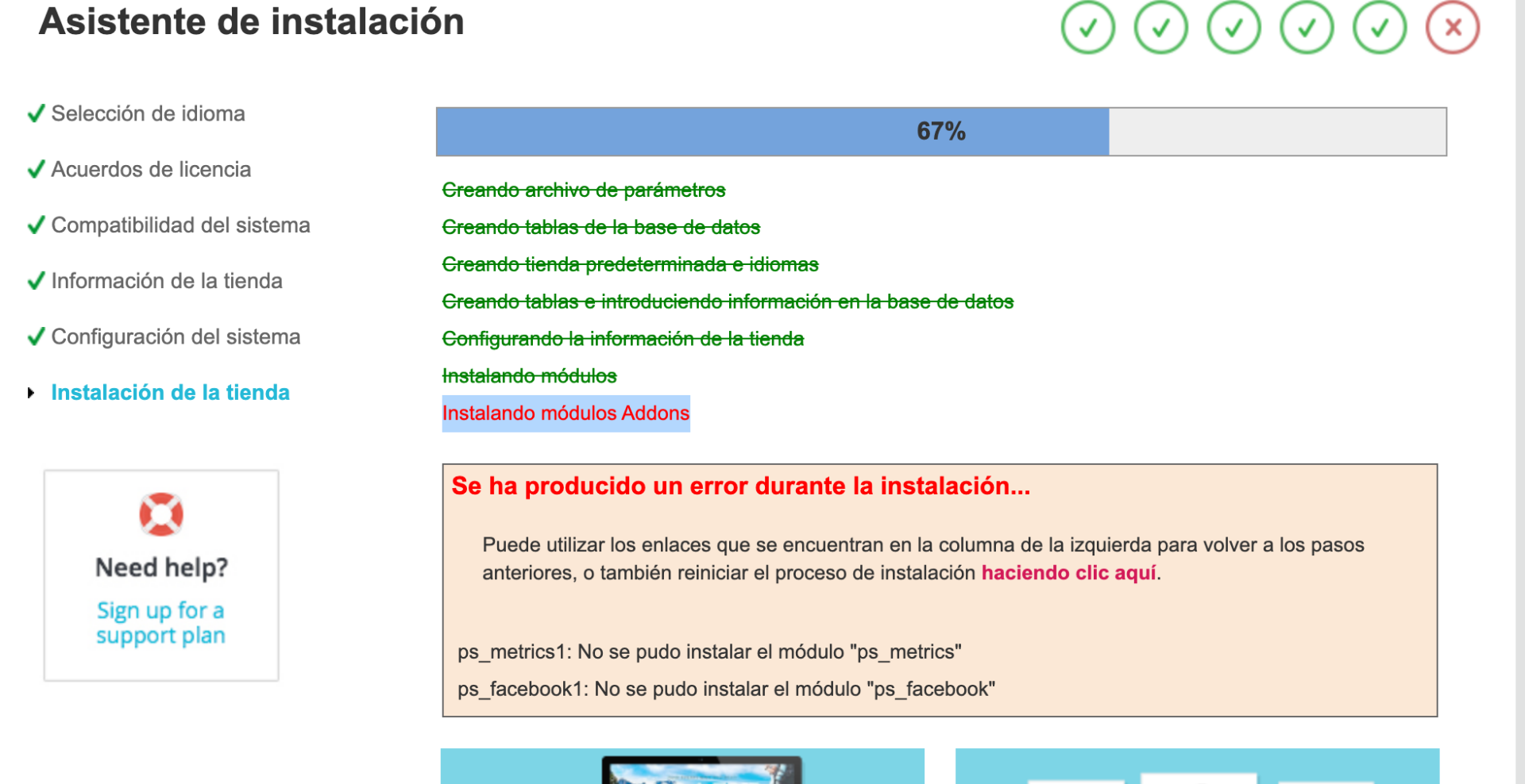enriquegmo Posted July 6, 2021 Share Posted July 6, 2021 Hola: si alguien le ha pasado, estoy instalando desde cero prestashop 1.7 he porobado todas las versiones y me mandas error en la seccion de instalacion modulos addons, instale todoas las actualizaciones habidas y por haber y sigue. sdel soporte del VPS no me han dado mucha ayuda, ya que es VPS y puedo instalar y quitar lo que quiera. si alguien tiene una idea o le haya pasado por favor pueda ayudarme a solucionar esto, actualizar de la 1,6 a la 7 ni hablar eso es peor. desde ya Gracias Link to comment Share on other sites More sharing options...
