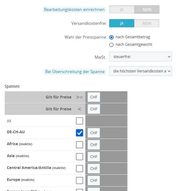 MadMan78 Posted July 14, 2021 Share Posted July 14, 2021 Hallo zusammen, Ich habe Probleme beim Einrichten von Versanddiensten. Ich habe 2 Versanddienste eingerichtet einmal Abholung im Geschäft und Postversand. Dazu habe ich eine neue Zohne eingerichtet DE-CH-AU und da die Länder Germany, Swizerland, Spain und Austria zugeordnet und alle anderen deaktiviert. Wenn man seine Adresse eingeben möchte tauchen auch nur diese 4 Länder auf, aber danach kommt immer die Fehlermeldung: Kein Versanddienst für diese Lieferadresse verfügbar! Ich kann nicht verstehen wo hier der Fehler liegt. Bitte um Hilfe. Vers.: Prestashop 1.7.7.5 Link to comment Share on other sites More sharing options...