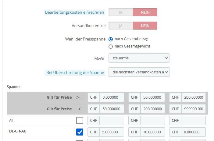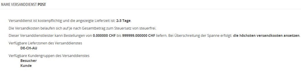 MadMan78 Posted July 17, 2021 Author Share Posted July 17, 2021 bei den Produkten hab ich schon alles versucht, nur eines von beiden, mal garnichts, mal bei beiden ein Häckchen gesetzt. keine Änderung. Bei dem kostenlosem Versand kann man ja auch keine Zahlen eingeben darum steht da wohl keine Angabe. Siehe Bild 1 Auf Bild 2 ist die Artikelversandseite wie sie momentan steht dann sollten ja laut Hinweis alle möglichen Dienste angezeigt werden. Bild 3 ist die Übersicht bei Postversand, was ich nur komisch finde dass die einzelnen Abstufungen nicht drin stehen wie eingestellt Siehe Bild 4. Wenn du noch Sreenshots braucht nur sagen was. Danke für die Hilfe. Link to comment Share on other sites More sharing options...