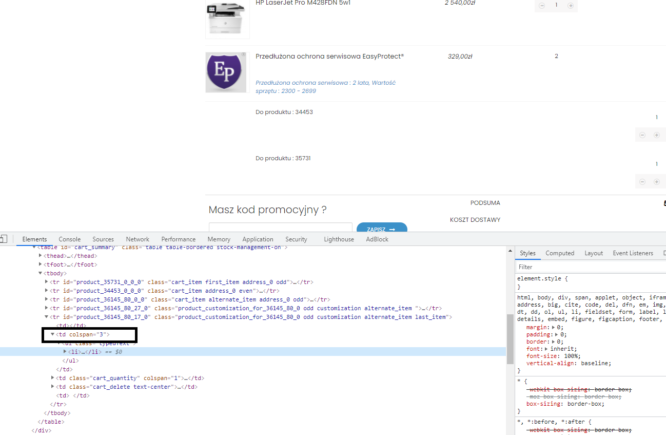 Potrzebuje dokonać kosmetycznej zmiany na liście produktów w koszyku wersja 1.6, ponieważ coś się rozjechały kolumny.