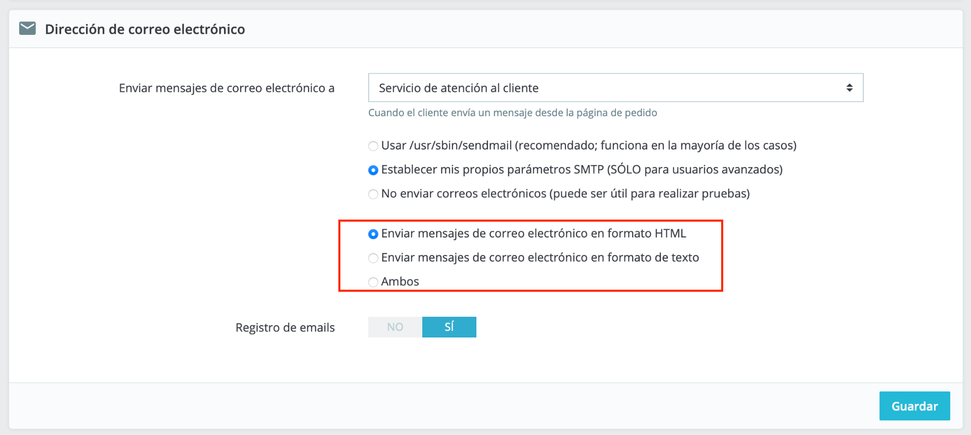 como puedo configurar que el email se envie como HTML o como TXT ?, lo pregunto por las traducciones ya que  hay dos opciones de traduccion
