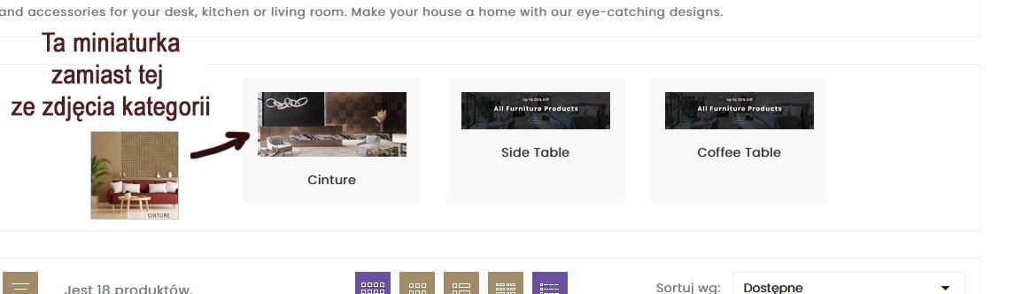 Mam problem ze zdjęciami w kategoriach. Otóż w spisie kategorii gdzie są miniaturki i spis kategorii wyświetlały się zdjęcia kwadratowe które ustawiam w panelu jako "miniaturka kategorii" a po wejściu już do danej kategorii ten duży obraz 1138x500 (bo tak ustawilem).