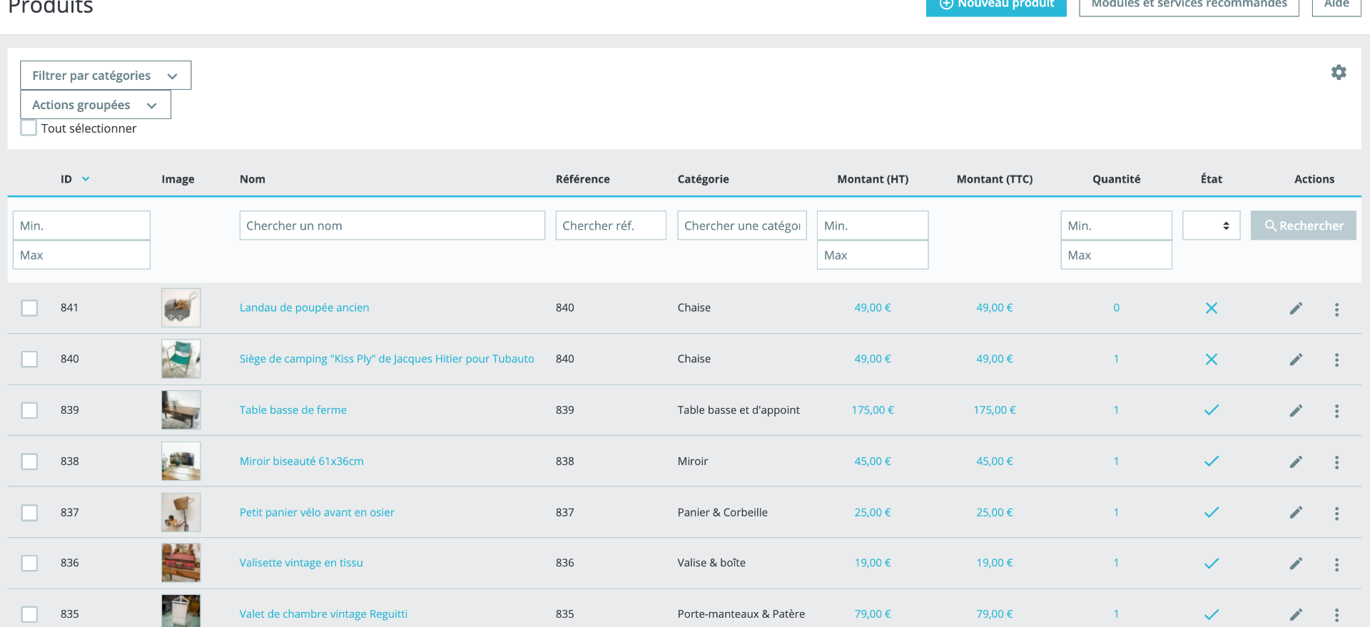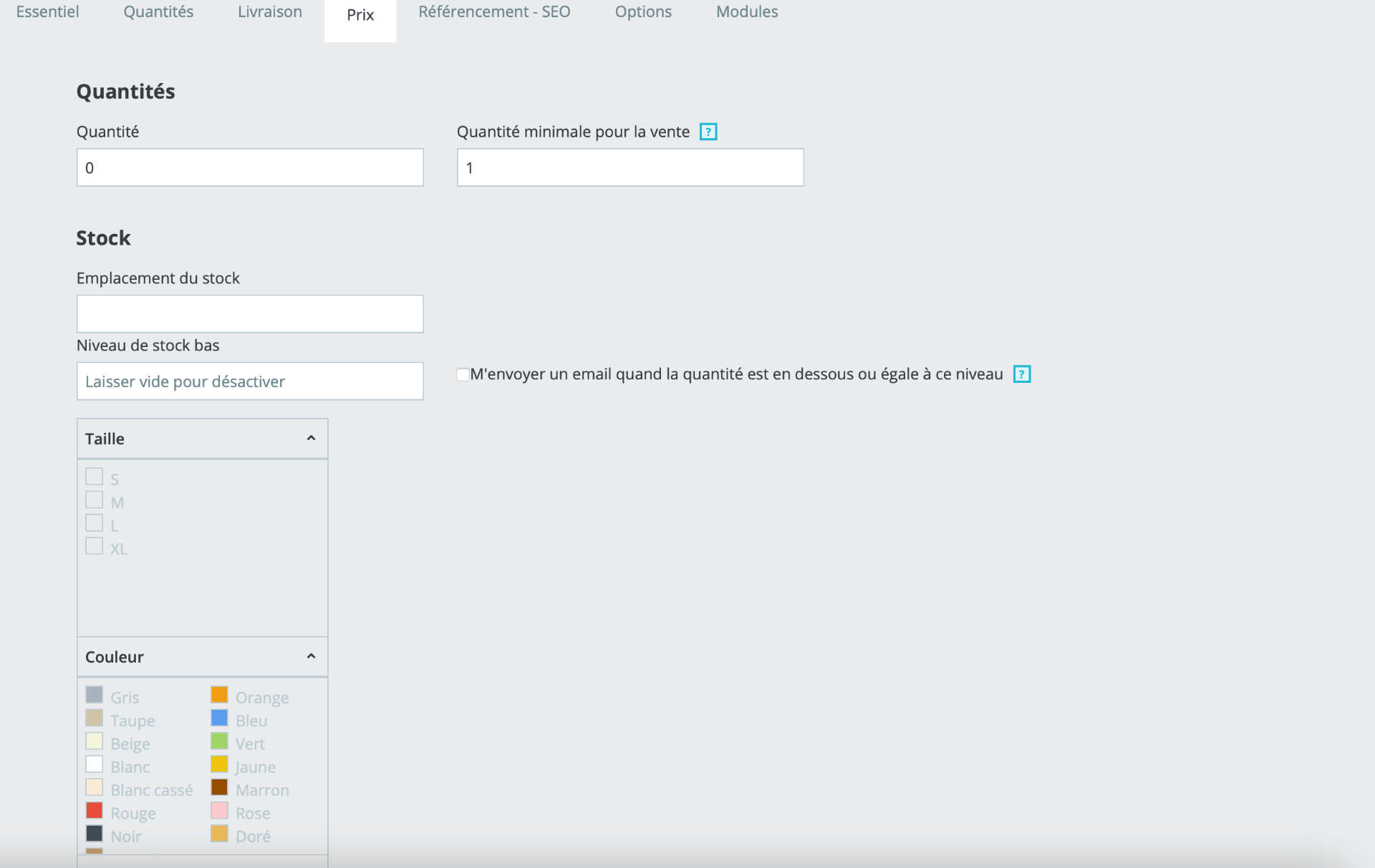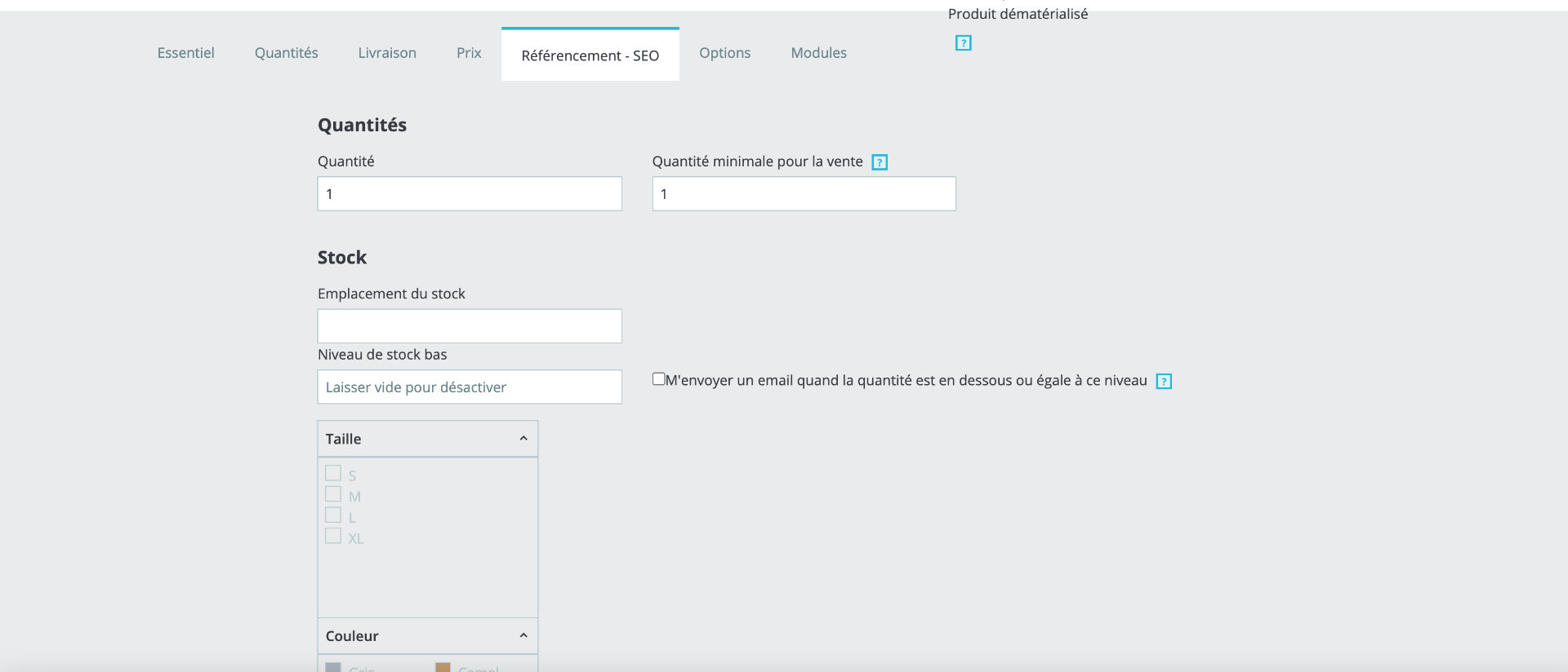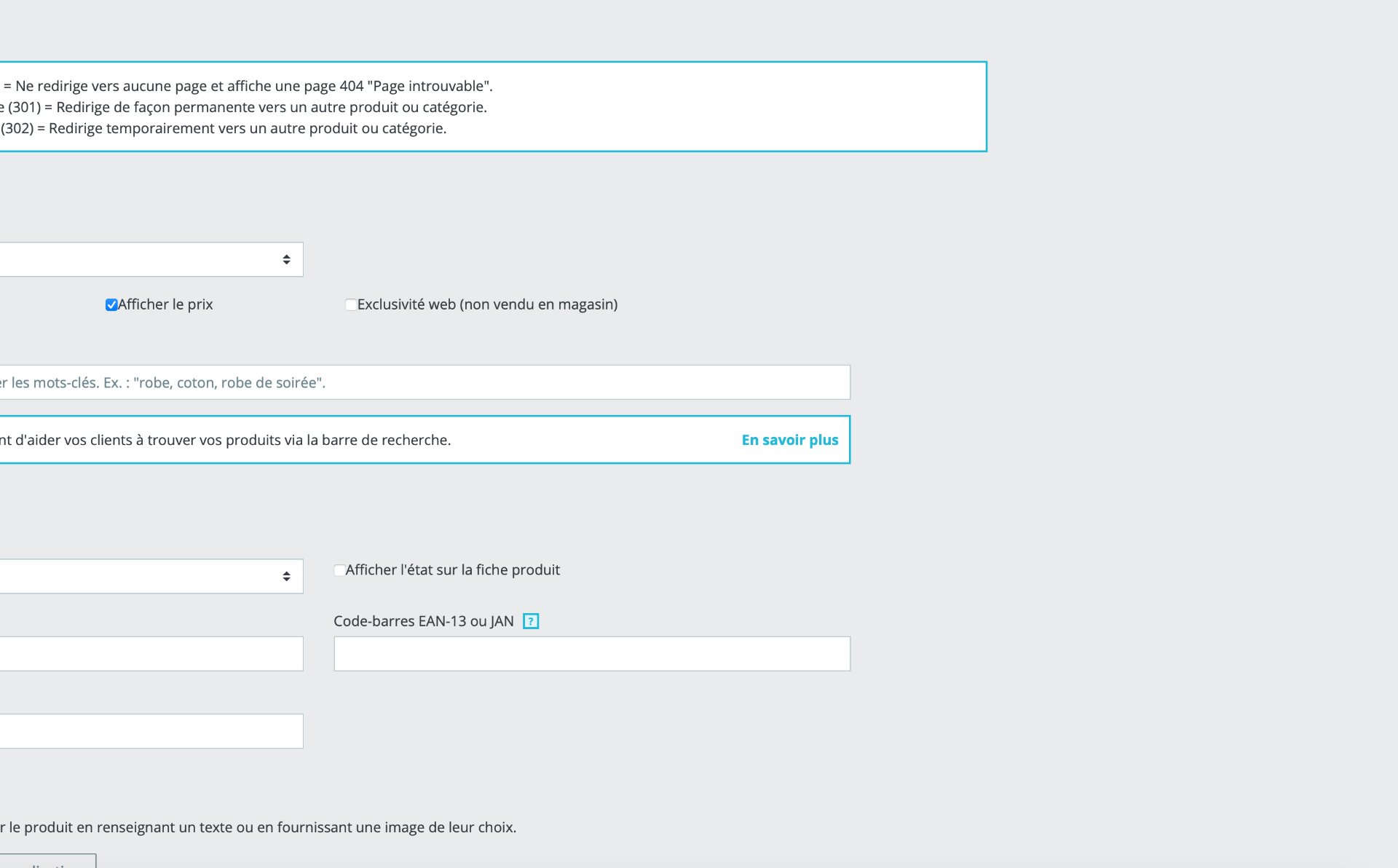 Tout ce qui apparaît grisé est impossible à accéder, je ne peux donc rien modifier ni créer de nouvelles fiches produits.