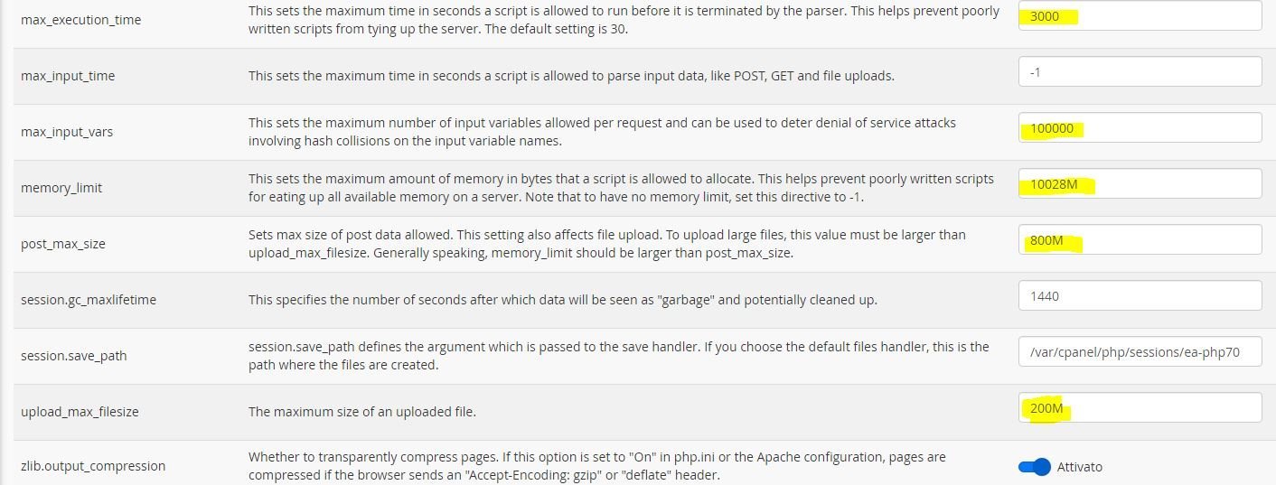 Danny Posted August 5, 2021 Share Posted August 5, 2021 (edited) 6 minutes ago, braccetto said: A me sembra così strano che sia successo da un giorno all'altro senza che abbia apportato modifiche. Si Danny il problema della 1.6 che va in loop mi è noto così come il problema del pulsante salva (bisogna cliccare esattamente sulla scritta), ma ci lavoro da diversi anni. Infatti i parametri su php li avevo già tutti alzati, puoi controllare se sono giusti? ti allego uno screen Si la categoria Home l'ho rinominata io in categorie anni fa. grazie dell'aiuto. ps. sto provando in locale ad aggiornare la versione a 1.6xx per vedere se il problema scompare hai alzato tu il memory limit cosi? Io ce l'ho a 1024M e funzia tutto alla perfezione, a meno che di esigenze particolari e l'hosting te lo faccia fare... Danny Edited August 5, 2021 by Danny (see edit history) Link to comment Share on other sites More sharing options...