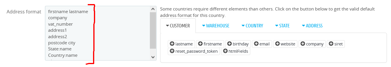 I'm running a multi-shop on my PrestaShop 1.7 installation and now I need to change the Address format of my country on one of these shops.