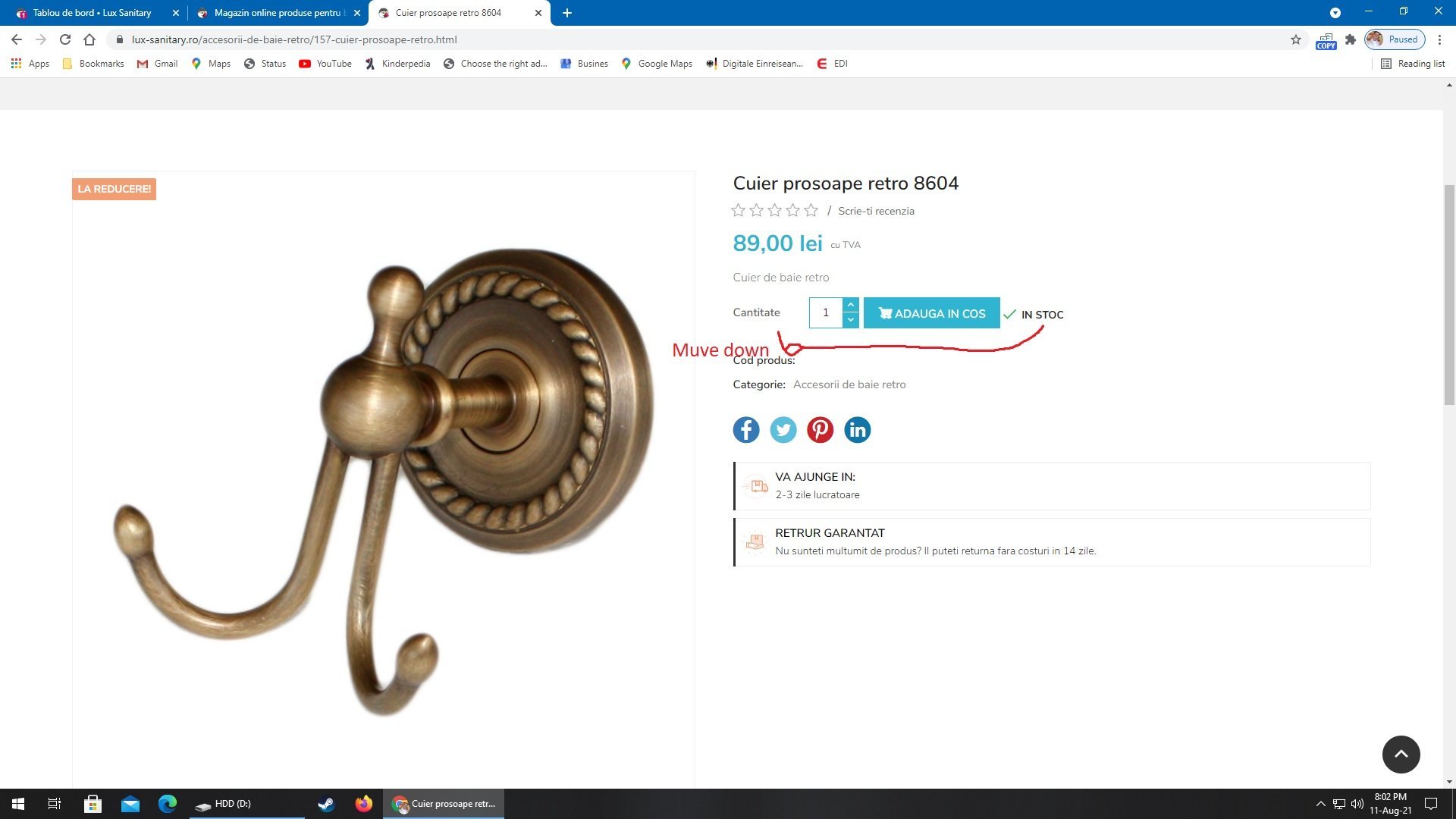 andreicos82 Posted August 11, 2021 Share Posted August 11, 2021 Hello I want to move the text you add when the product is in stock under the add to cart button. Can anyone help me please? I have attached a picture Thank you! The website is lux-sanitary.ro Link to comment Share on other sites More sharing options...