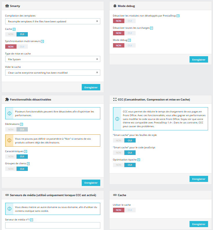 Tristan MAHE Posted August 12, 2021 Share Posted August 12, 2021 Bonjour à tous, Actuellement sur Prestashop 1.7.4.1 je rencontre un problème sur mes fiches produits. Leurs modifications ne sont pas toujours prises en compte, le plus souvent sur les articles avec déclinaisons. Exemple : je fais actuellement le ménage sur les très nombreuses fiches en produit en double ou en triple d'un article similaire pour n'obtenir qu'une seul fiche avec des déclinaisons. Or, la sauvegarde de ces déclinaisons est fastidieuse, le code interne est très souvent non retenu. Les modifs sur le Titre de l'article et également sur sa description ou son récapitulatif ne sont pas toujours pris en compte. Mon problème est au final très similaire à un autre Post datant de 2019 mais sur prestashop 1.6.https://www.prestashop.com/forums/topic/960260-les-modifications-de-produit-ne-senregistrent-pas-toujours/ Je n'ai malheureusement pas accès à mon PHP, je suis actuellement simple apprenti et une entreprise tierce prestataire s'occupe de la maintenance (mais pas très réactif ^^). Voici en complément les configurations établient sur ma page Paramètres Avancés > Performances sur le BO de Presta. Link to comment Share on other sites More sharing options...