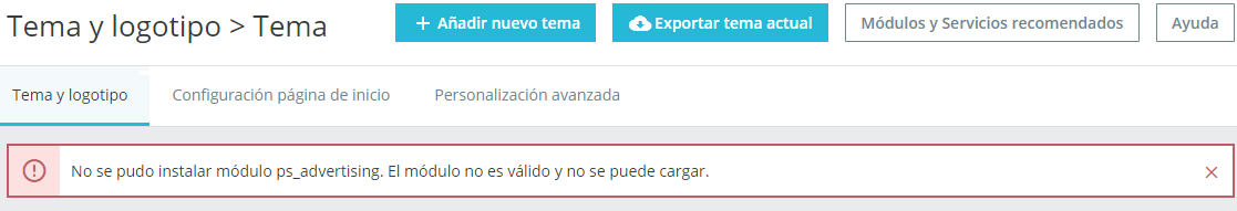 Pixefora D Posted August 25, 2021 Share Posted August 25, 2021 Entiendo que no es compatible con tu versión de prestashop, lo que puedes hacer es entrar en el theme en cuestion via FTP y edita: themeencuestion/config/theme.yml Con el procesador de textos que uses busca todas las apariciones de "ps_advertising" y borra LA LINEA COMPLETEA allá donde esté. Esto hará que no se instale el módulo. Link to comment Share on other sites More sharing options...