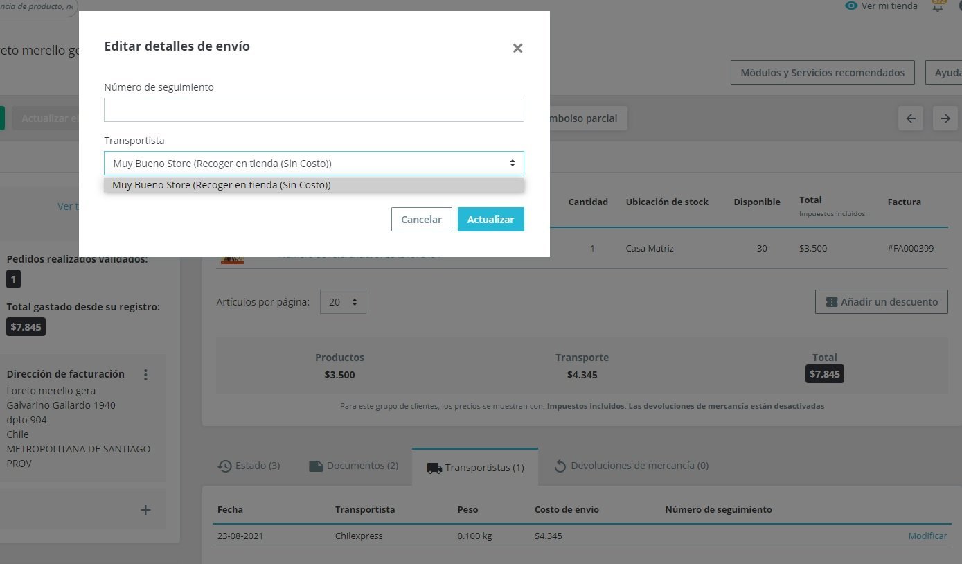 MuyBueno.cl Posted August 25, 2021 Author Share Posted August 25, 2021 hace 9 horas, Pixefora D dijo: Como bien dice @gusman126, debes guiarte por el id_reference. Prestashop lo hace así para guardar en cada pedido el carrier que se utilizó en ese momento con su tarifa correspondiente. Utiliza el id_carrier para ver el id_reference y guiate por este último. Hola... gracias... efectivamente el id_reference no cambia, el cual podria usar para TPL modificados, es una buena solucion para ese problema, pero igual tengo la problematica en modulos que usan el carrier_id del transportista como llave principal ahora, que fue lo que hice... y en parte se soluciono... realice una consulta sql directamente en la base, cambiando en la tabla order el campo id_carrier con el nuevo id_carrier simplemente una sentencia update, de esa forma homologue la base con el transportista que esta configurado como final (id_carrier nuevo) pero... me salta otro problema con eso, en el cuadro desplegable que sale cuando uno desea asignar el tracking number de un pedido... en la lista de transportistas solo aparece el de retiro en tienda, debiendo aparecer al menos cinco transportistas... sin dejarme cambiar el transportista ahora... si entran nuevas ordenes, estas nuevas ordenes toman el id_carrier nuevo, y al momento de querer agregar el tracking number si muestra los otros transportistas... Link to comment Share on other sites More sharing options...