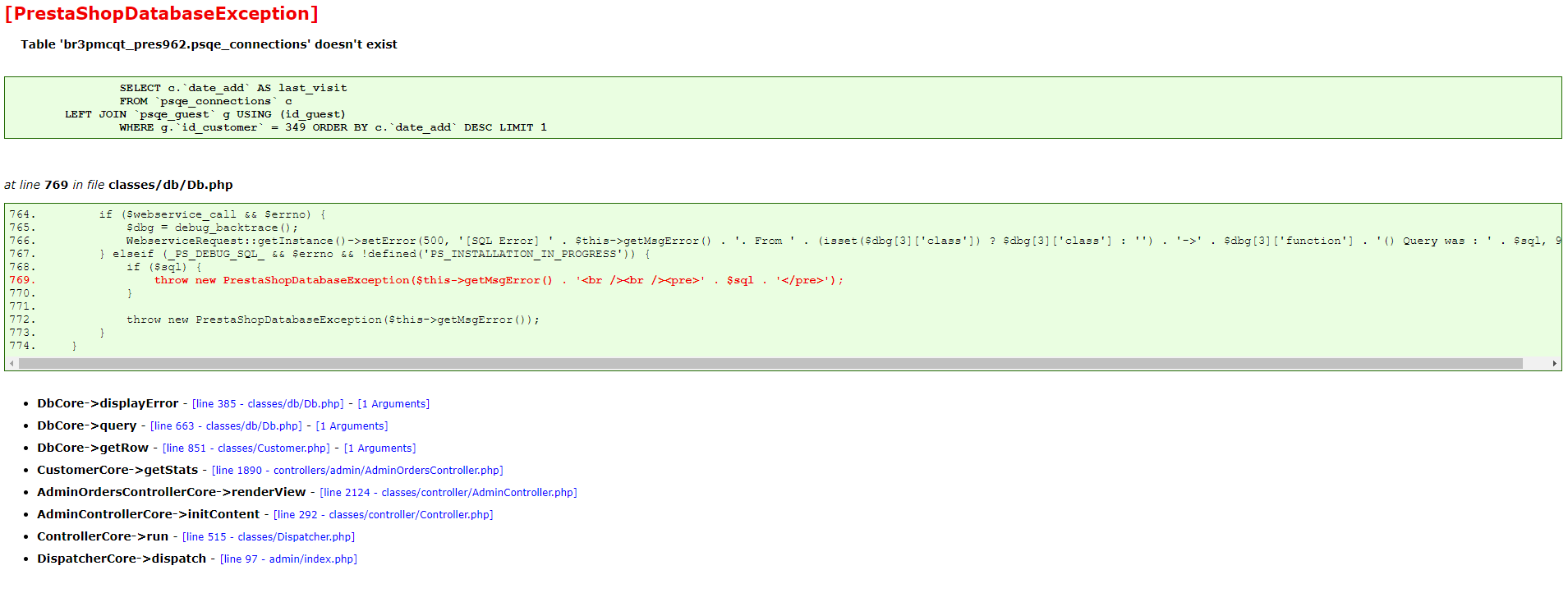 Catarina123 Posted August 25, 2021 Share Posted August 25, 2021 Boa tarde, quando o cliente faz uma pesquisa na barra e clica no enter ou na lupa de pesquisa aparece este erro. O mesmo acontece no backoffice, quando tento aceder às encomendas, dos clientes. Preciso urgente de ajuda, pois os clientes não conseguem fazer as pesquisas nem eu consigo aceder às encomendas. A versão é 1.7.6.3 e já fiz o upgrade e permanece igual. Link to comment Share on other sites More sharing options...
