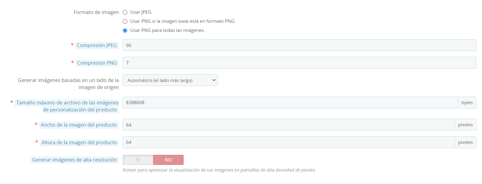 Si se trata de formas o ilustraciones puede estar bien PNG, pero para fotografías de producto lo recomendable es JPG.