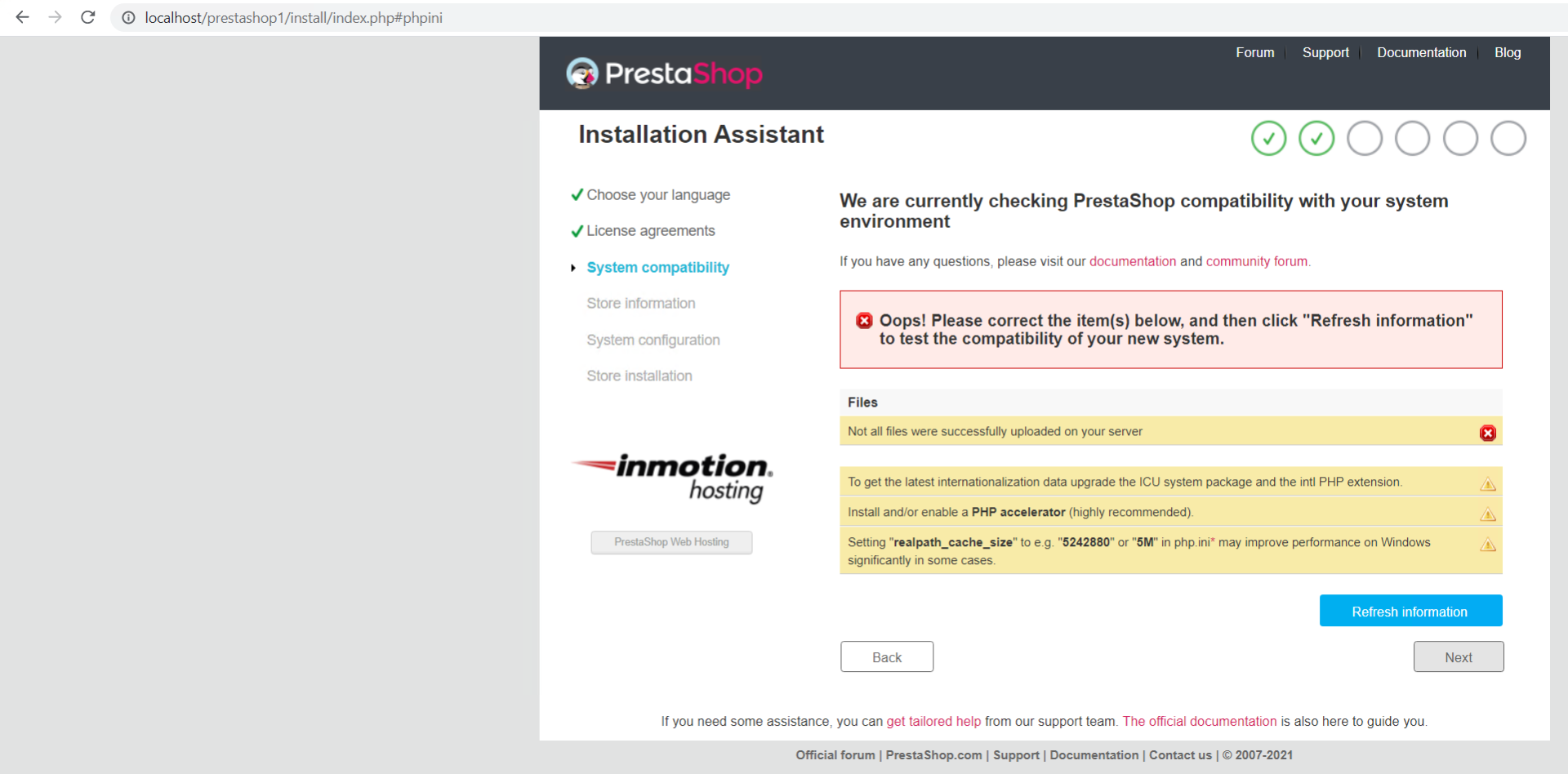 Aiden_Jointak Posted September 9, 2021 Share Posted September 9, 2021 (edited) Hi All, I am trying to install Prestashop 1.7.7.7 for the first time on Windows Server 2016. PHP 7.3 for IIS Express has been installed. page http://localhost/phpinfo.php works. Also, I am using IIS. I've tried version 1.7.7.7 & 1.7.7.6, but I encountered error Not all files were successfully uploaded on your server, but I download the zip file directly from the Windows server, so no FTP software involved. Also, I login the Windows server as Administrator, so I don't think the permission is a problem. So what else can I do to get rid of this ridiclous error? Edited September 9, 2021 by Aiden_Jointak (see edit history) Link to comment Share on other sites More sharing options...