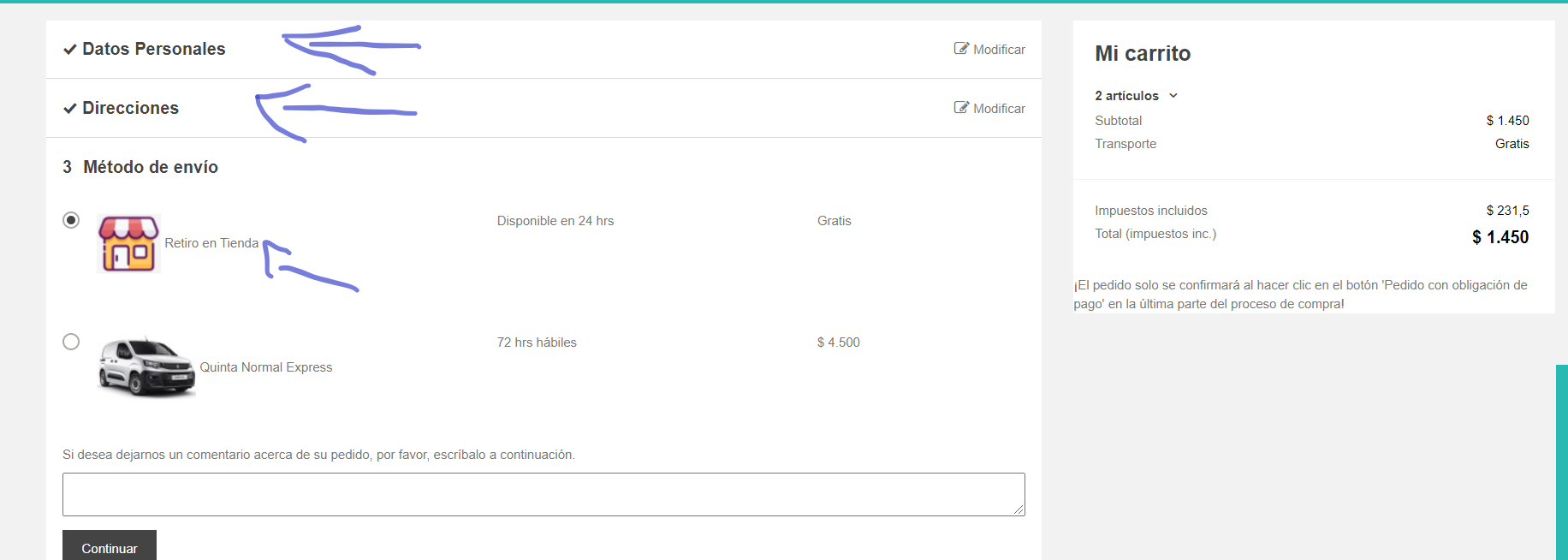 Hola, tengo una tienda en linea y quisiera saber como puedo configurar o que modulo me sirve, para generar un retiro en tienda antes de que el cliente deba llenar la dirección y demás datos del formulario, esto ya que desde transportistas solo deja seleccionar retiro en tienda una vez llenada la dirección y demás datos, lo que genera carritos abandonados por al cantidad de datos solicitados, porfavor ayuda. saludos