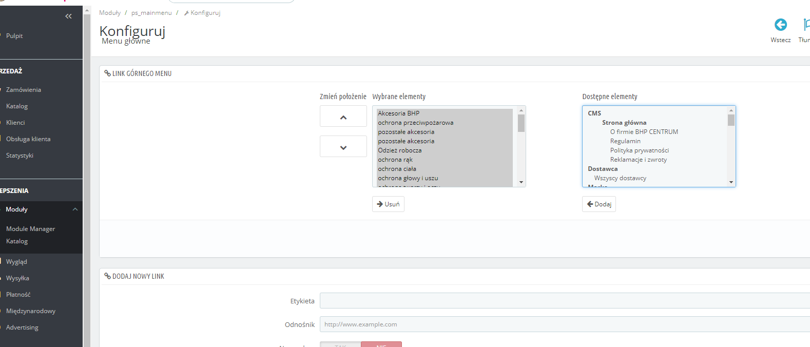 Mam problem ze sklepem prestahop v. 1.7.6.7. W module Menu Główne ustawiłem kategorie jak na zdjęciu
