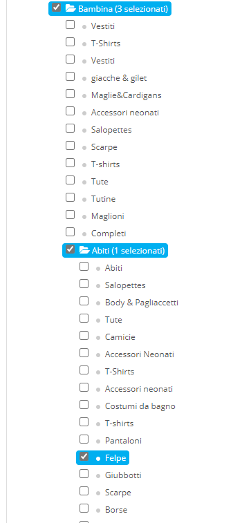 follettostore Posted September 22, 2021 Share Posted September 22, 2021 Ciao Ivana, Se hai collegato anche l'articolo nella categoria padre (nel tuo caso specifico - Bambina) e continui a non visualizzarlo lì ma solo nelle categorie figlio (maglie, bambina maglie) no sarebbe utile contattare direttamente il supporto di Smarty. Ti suggerisco di fare comunque una prova associando dal backend manualmente queste categorie a dei prodotti Link to comment Share on other sites More sharing options...