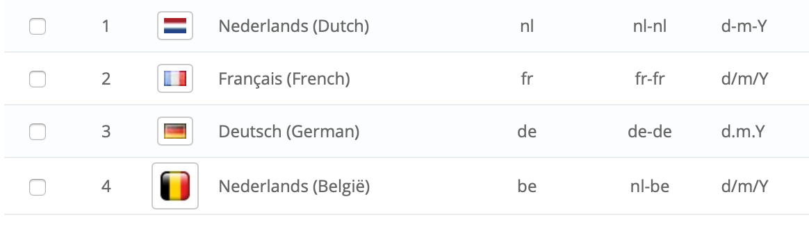 Ik vermoed dat het iets te maken heeft met de geïnstalleerde talen in de shop. We hebben Nederlands voor Nederland en Nederlands voor België als taal. Kan dit het probleem veroorzaken?