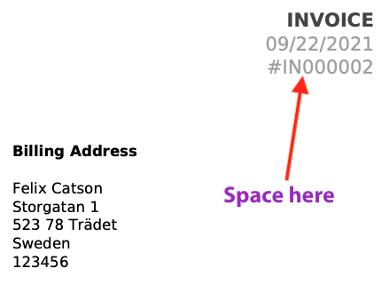 Magnusvb Posted September 22, 2021 Share Posted September 22, 2021 Hello When generate the PDF invoice from the backoffice (order page), in the header there is an invoice number like "#IN000002". Is it possible to add a space after the #IN part (and before the number)? So it looks like this: "#IN 000002". I have tested adding a space in the settings for prefixes, but it seems to be removed when saving. Magnus Link to comment Share on other sites More sharing options...
