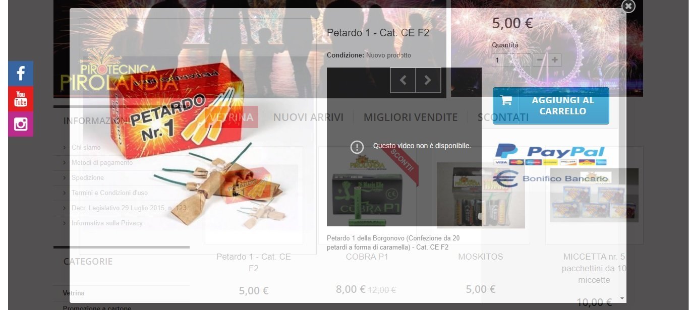 Kingtonino Posted September 26, 2021 Share Posted September 26, 2021 Hello everyone, I have a problem with the site, Prestashop 1.6.1.1. Whenever I open a product preview, the pop-up has become transparent. This problem arose by itself, i don't know how to solve, please can someone help me? A thousand thanks. The site is www.pirotecnicapirolandia.it Buongiorno a tutti, ho un problema con il sito, Prestashop 1.6.1.1. Ogni qual volta apro l'anteprima di un prodotto, il pop-up è diventato trasparente. Questo problema si è presentato da solo, non so come risolvere, per favore qualcuno può aiutarmi? Grazie mille. Il sito è www.pirotecnicapirolandia.it Link to comment Share on other sites More sharing options...