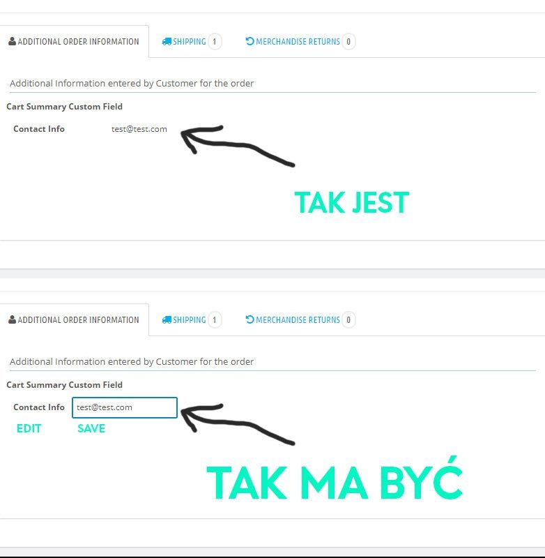 Zależy mi, aby w tym miejscu w administracji w zamówieniu była opcja "Edytuj" gdzie będę mógł zmienić wartość "123456" na inną lub wpisać taką wartość jeśli klient ją pominął, ponieważ jest to pole nieobowiązkowe.