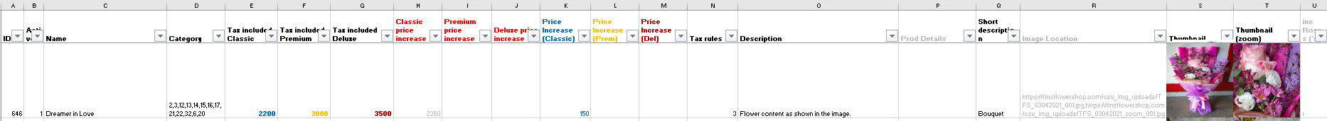 flowers_ph Posted November 4, 2021 Share Posted November 4, 2021 (edited) this is how i do mine - might help? I have my product details on one sheet and the combination on a separate sheet in excel - then output to csv and upload heres a script for adding photos to excel https://www.extendoffice.com/documents/excel/1156-excel-insert-multiple-pictures.html#a1 Edited November 4, 2021 by bnadauld (see edit history) Link to comment Share on other sites More sharing options...