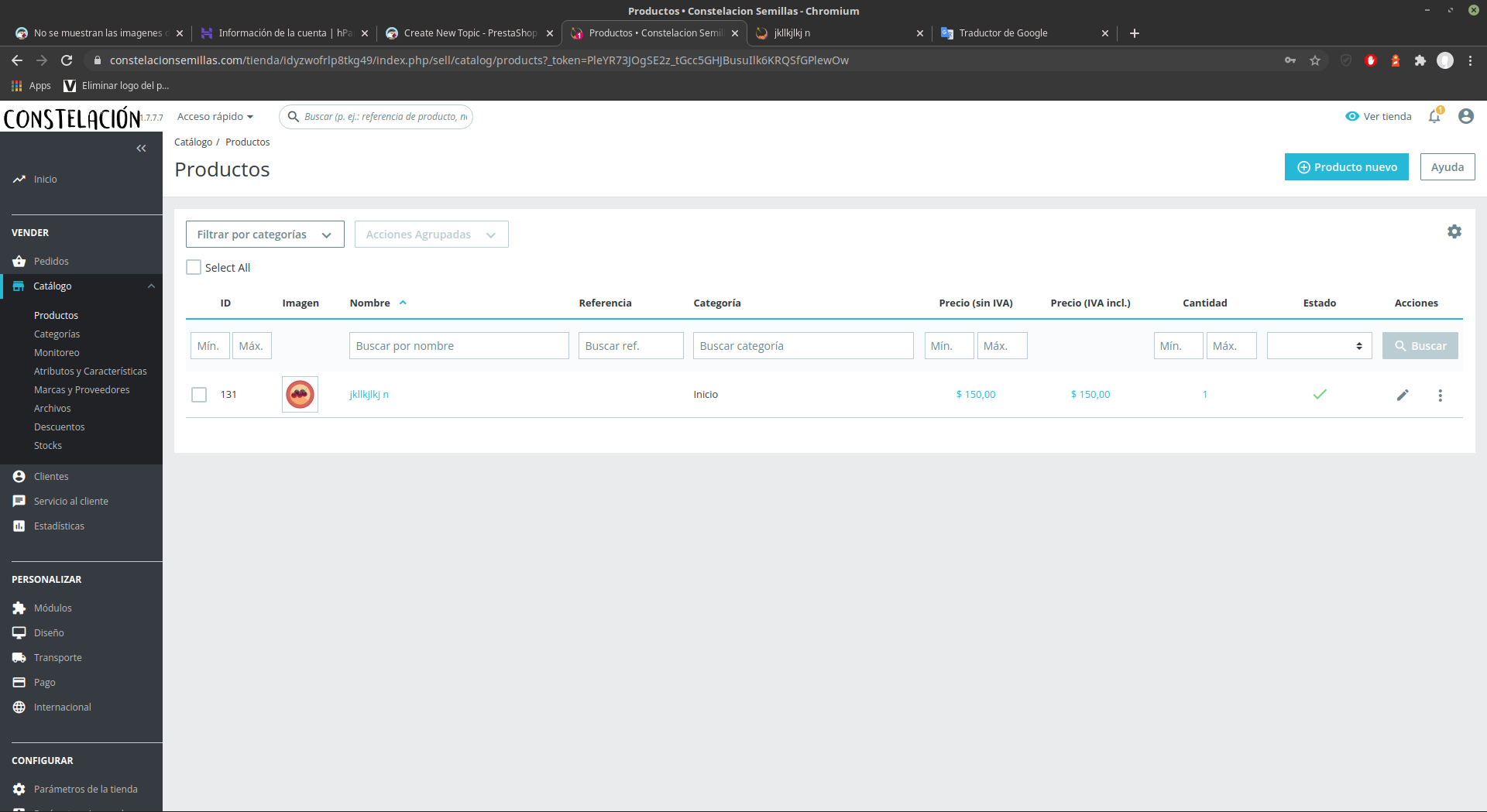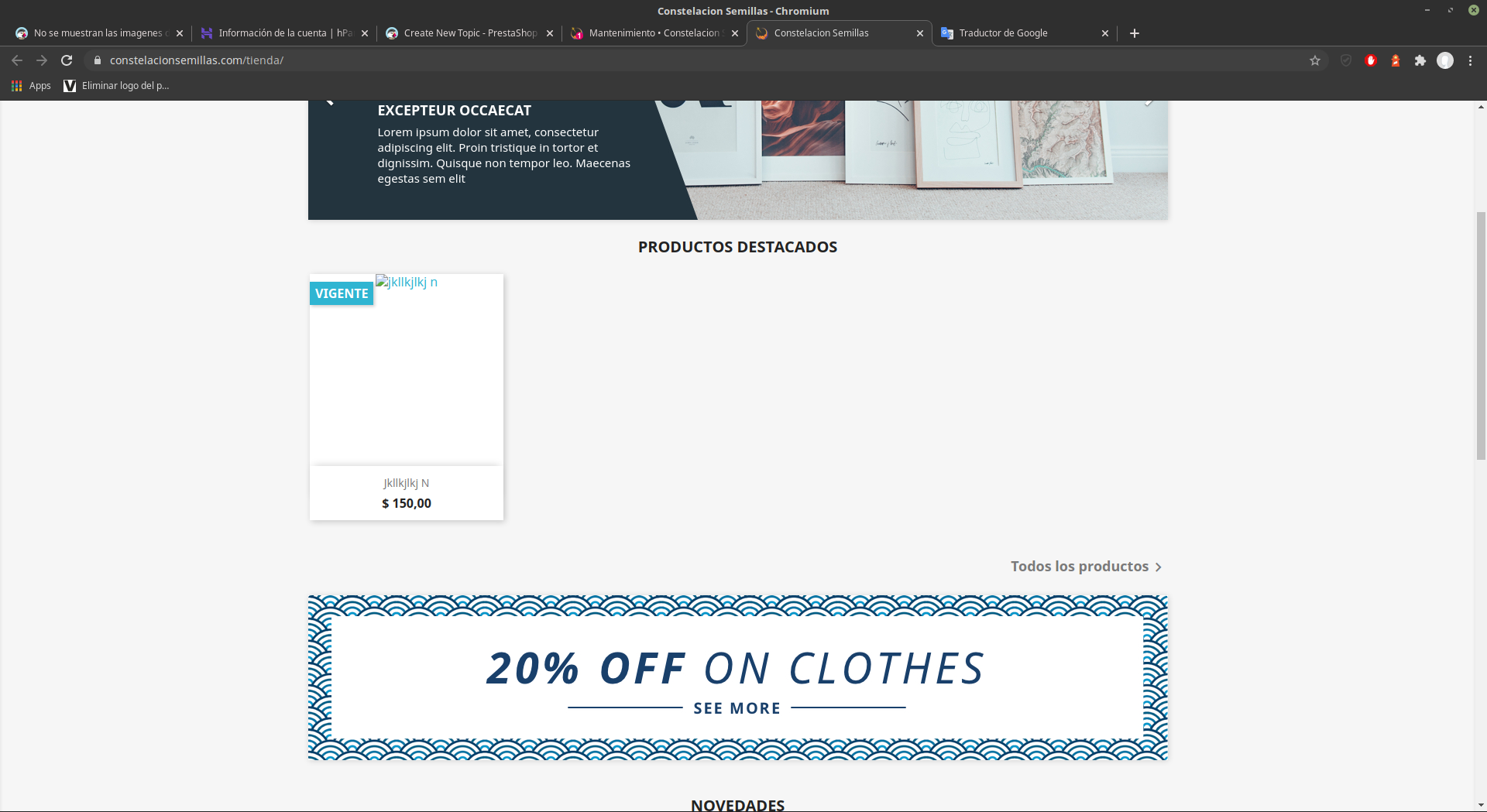 matiasdavid112 Posted October 6, 2021 Share Posted October 6, 2021 Hola que tal? Como estan? Abro un hilo porque aun no encuentro...He instalado una tienda prestashop en un subdominio... q es tienda.constelacionsemillas.com Hace rato q estoy buscando la solucion y no doy mella... De ante mano les aclaro q ya probe, desahibilitar las urls amigas y el httaccess. como tambien he probado en regenerar las minaturas. Las imagenes, en su pagina de producto se ven. Pero No se ven en el home...ni tampoco en el back office...adjunto capturas.... Ya probe, instalarla, reinstalarla...instalar la ultima version. Pero no encuentro nada. Hello whats up? How are you? I open a thread because I still can't find ... I have installed a prestashop store in a subdomain ... which is tienda.constelacionsemillas.com I have been looking for the solution for a while and I do not make a dent ... In advance I clarify that I already tried, disable the friendly urls and the httaccess. as I have also tried to regenerate the minatures. The images, on your product page, are seen. But they are not seen at home ... nor in the back office ... I attach screenshots ... I already tried, install it, reinstall it ... install the latest version. But I can't find anything. Link to comment Share on other sites More sharing options...