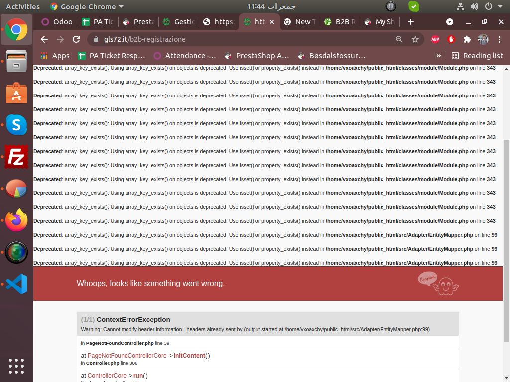 psicografici Posted October 7, 2021 Author Share Posted October 7, 2021 PS: risolto il problema dopo aver seguito questo consiglio: In this case, please open file: public_html/src/Adapter/EntityMapper.php go to line code 99 Change from if (array_key_exists($key, $entity_defs['fields']) || array_key_exists($key, $entity)) { To if (isset($entity_defs['fields'][$key]) || isset($entity->{$key})) { Save file and double test. ed aver effettuato il downgrade da php 7.4 a php 7.3 Link to comment Share on other sites More sharing options...