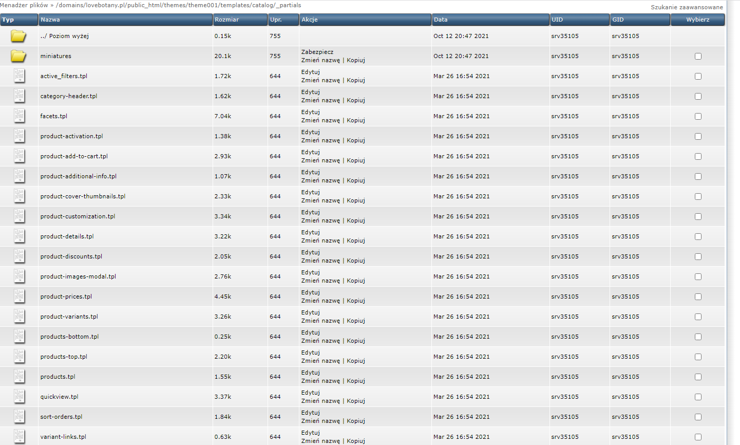 0 pawel2020 Posted October 14, 2021 Author Share Posted October 14, 2021 Patrzałem wczoraj ale na pilik o nazwie product i był (czytałem na innym formu że podobno jego nie ma i to powoduje ten błąd ) . Ale tego product-flags faktycznie nie ma. Wrzucam screena z folderu czy nie pomyliłem katalogu w szukaniu. Można dograć z podstawowego szablonu Presty ? Link to comment Share on other sites More sharing options...