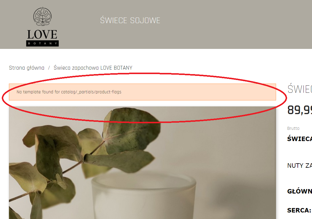 pawel2020 Posted October 13, 2021 Share Posted October 13, 2021 Witam przy zmianie atrybutu . ( w moim przypadku pojemości pojawia się komunikat (No template found for catalog/product ) ) https://www.lovebotany.pl/strona-glowna/27-58-swieca-zapachowa-love-botany.html#/1-rozmiar-180ml Ma ktoś pomysł jak go rozwiązać ? Link to comment Share on other sites More sharing options...