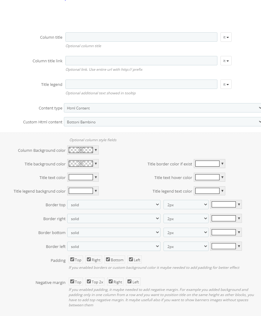 Ivana Info Posted October 25, 2021 Share Posted October 25, 2021 Salve a tutti, sto riscontrando dei problemi sui bottoni dell'homepage (vedi allegato) da quando ho cambiato gli URL dei bottoni stessi, anche se non ho cambiato le impostazioni grafiche. L'immagine di sinistra è quella errata, i bottoni dovrebbero essere con i riquadri bianchi e rispondere al rollover come quelli dell'immagine di destra. Ho provato anche a modificare le impostazioni nel modulo Iqitcontentcreator come da immagine allegata ma non cambia nulla. Non posso nemmeno copiare le impostazioni dei bottoni dell'immagine di destra, perché come apro quel modulo all'interno le impostazioni sono tutte in "trasparenza". Come posso risolvere? Link to comment Share on other sites More sharing options...