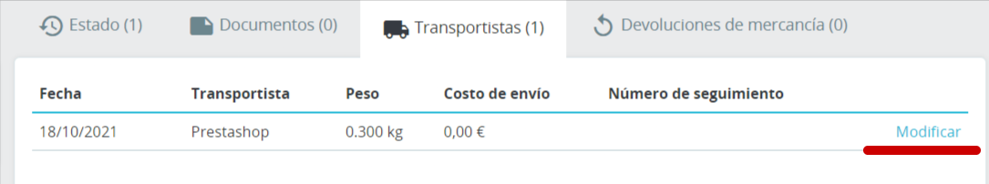 Fer5320 Posted October 26, 2021 Share Posted October 26, 2021 Tras actualizar a Prestashop 1.7.8.0 no aparece para poder adjuntar el número de seguimiento de los pedidos en: pedidos, transportistas, número se seguimiento. Solo aparece el nombre del transportista, pero no hay para agregar el número de seguimiento. ¿Alguien sabe cómo solucionarlo? Gracias. Link to comment Share on other sites More sharing options...