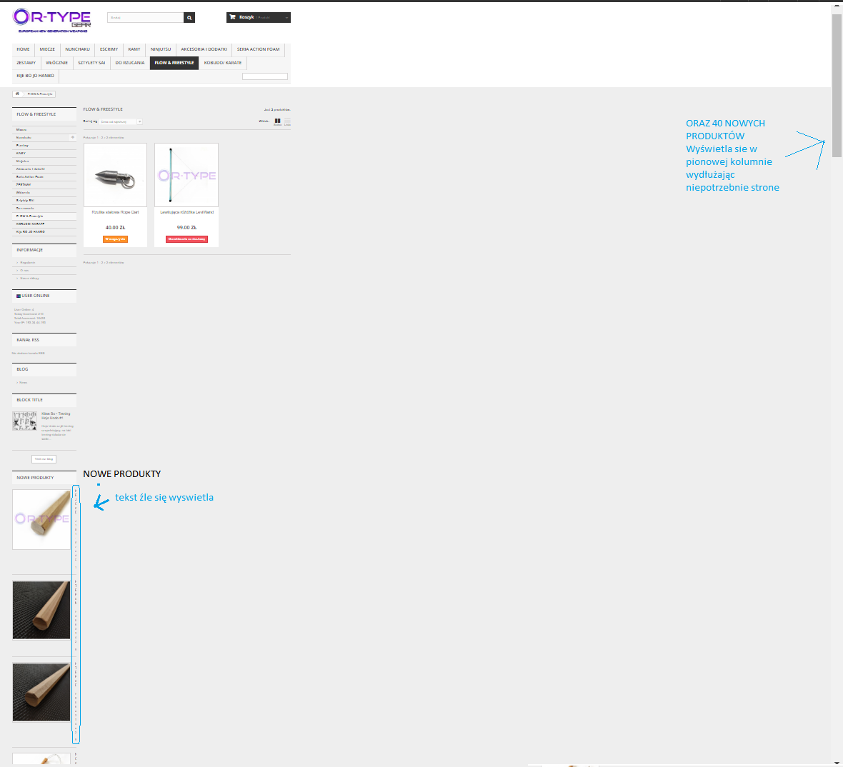 Witam ,w załączniku przykład jak obecnie wyswietlają sie nowe produkty, po wejsciu w kategorie . Ogolnie łatwiej by mi bylo to usunąć ale tylko ten boczny blok lecz nie wiem jak bo na stronie głownej poprawnie wyswietlają sie te nowości