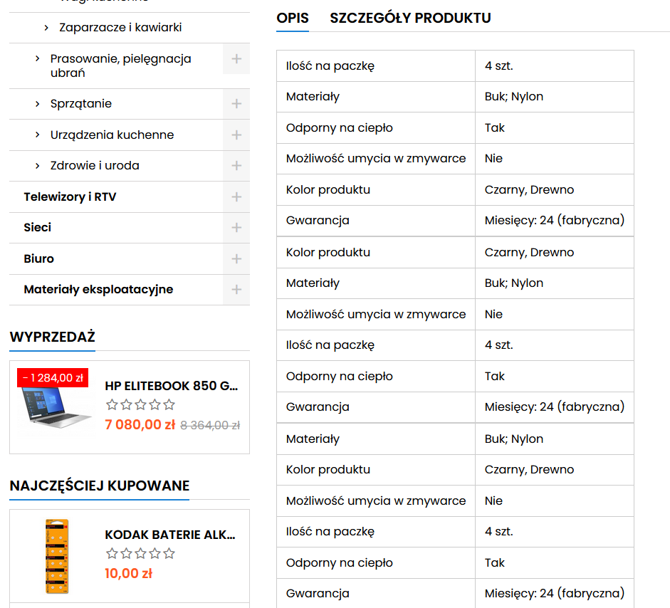 Mam taki problem w sklepie, że długie opisy w 80% produktów są zdublowane (jak w załączeniu). Wynika to z błędu który był w module do integracji z hurtownią. Tak naprawdę nie powinny się tam znaleźć dane techniczne, które z reguły są w zakładce szczegóły produktu.