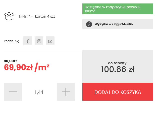 natomiast dodawać do koszyka można tylko pełne paczki. (np paczka 1.42m2)