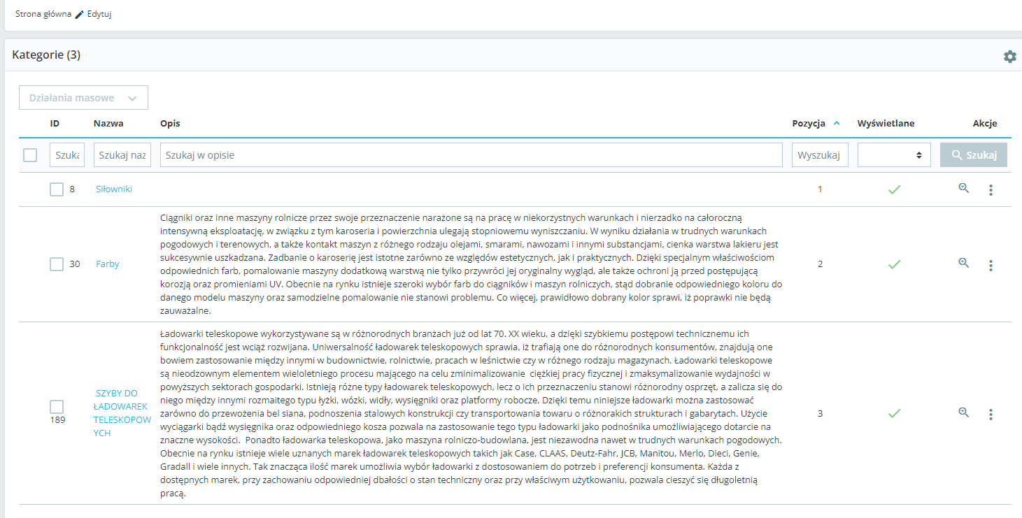 Dla innej kategorii, również wyświetla się tak jak bym chciał: