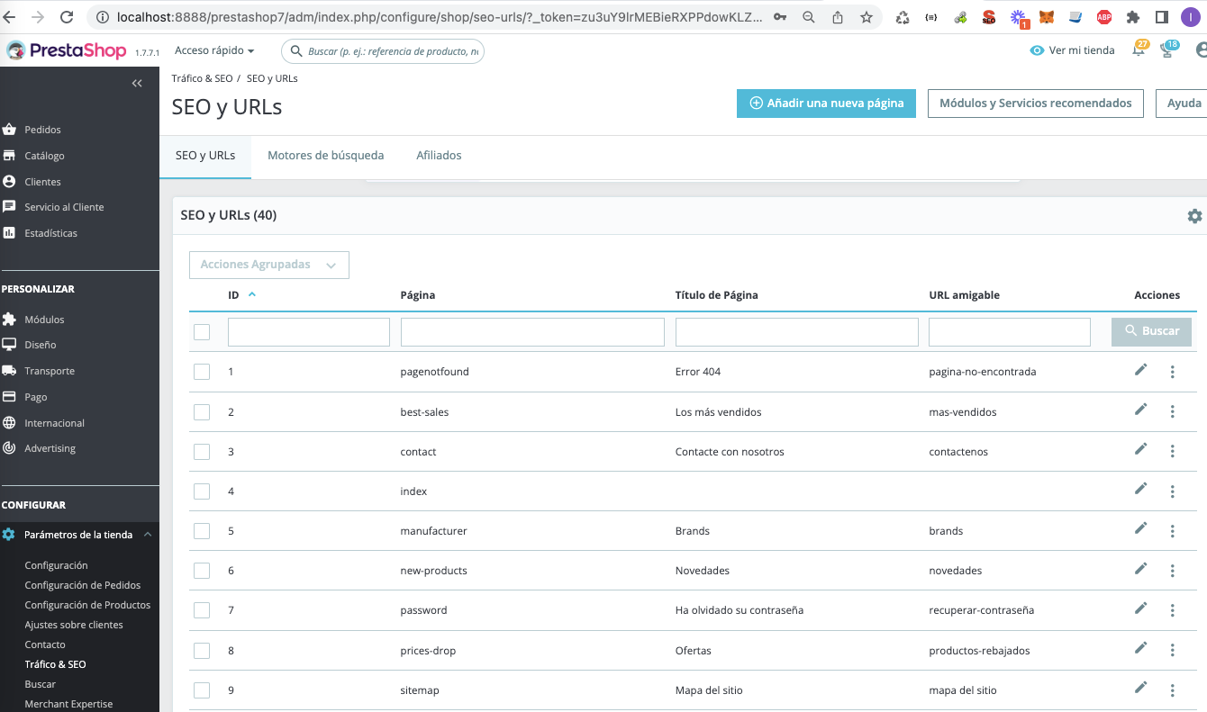SAKSCM Posted June 1, 2022 Share Posted June 1, 2022 Hola, Si tu tienda no es multiidioma y están los idiomas activos te recomiendo que vayas a Internacional - Idiomas y desactives todos menos el español. Si tienes multiidioma entonces como te dicen más arriba revisa la url amigable de la categoría en varios idiomas, no sólo no debe tener acentos si no que tampoco puede estar vacía. En Parametros de la tienda, en SEO & URLs desactiva que las URL amigables puedan tener acentos Borra caché y prueba de nuevo. Un saludo. Link to comment Share on other sites More sharing options...