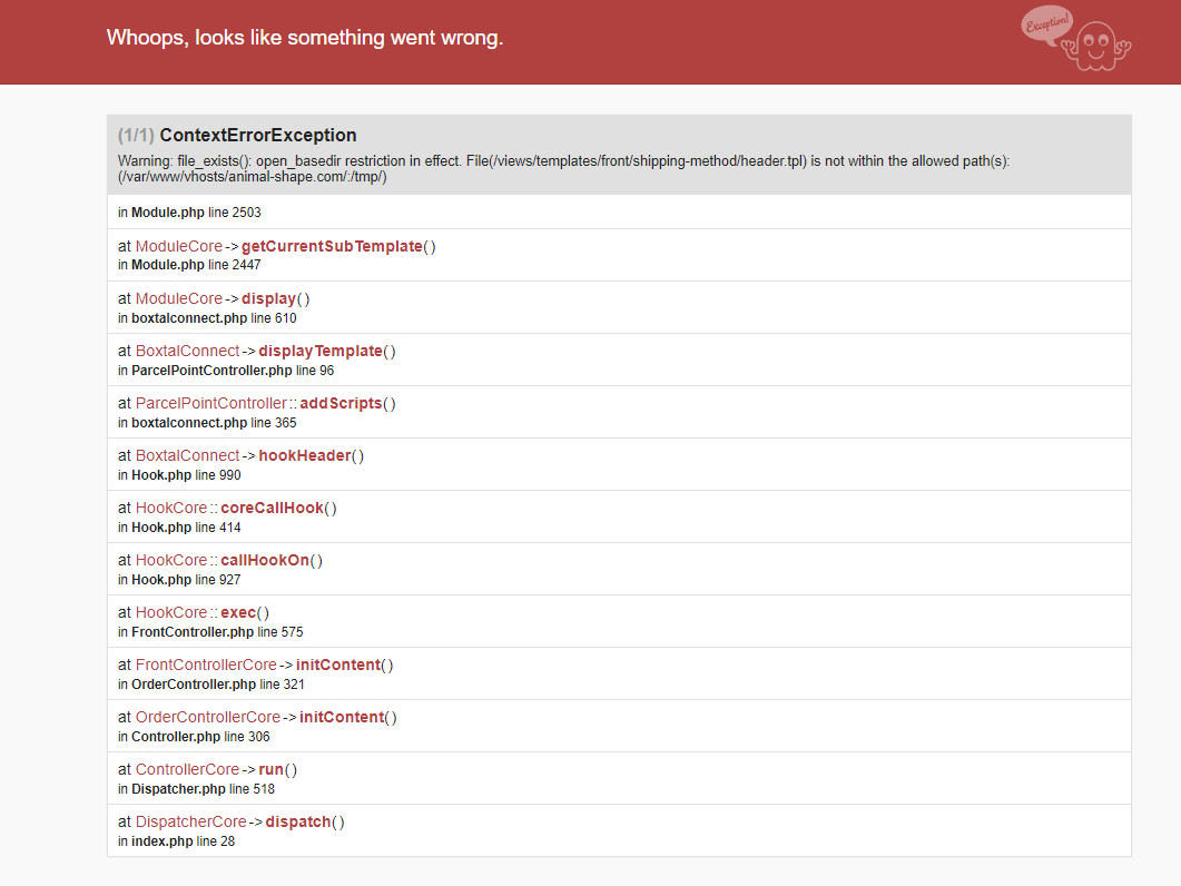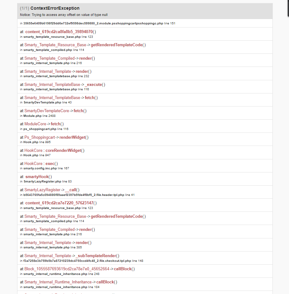 Dans j'active le mode debug, j'ai une erreur ContextErrorException