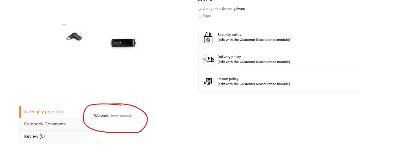 Przy dodawaniu produktu mogę to ustawić, ale niestety nigdzie się to nie wyświetla. Chciałbym, aby pojawiało się to gdzieś przy tych informacjach: